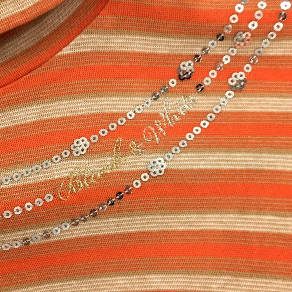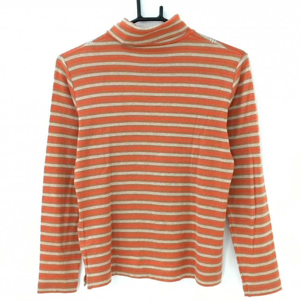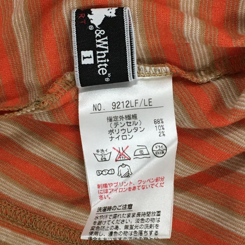ブラックアンドホワイト 長袖タートルネックシャツ オレンジ×ベージュ ボーダー スパンコール レディース 1(S) ゴルフウェア Black&White