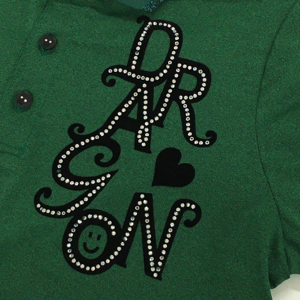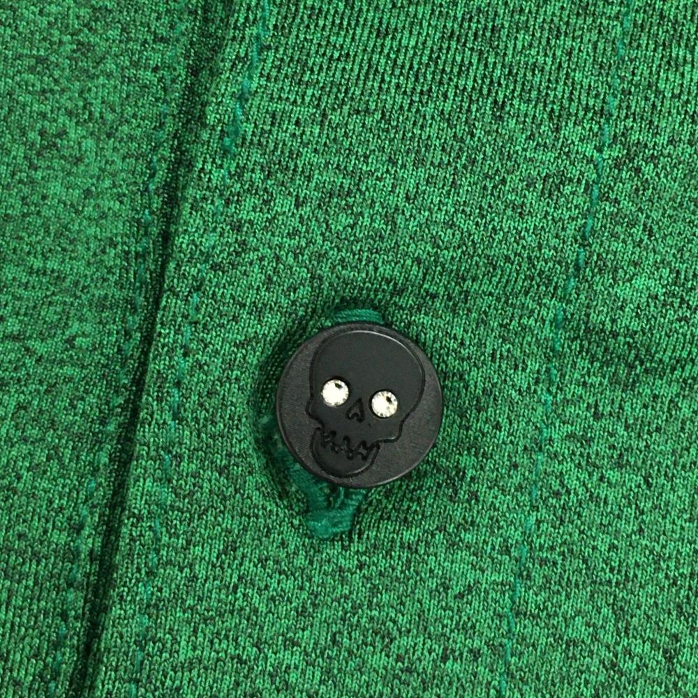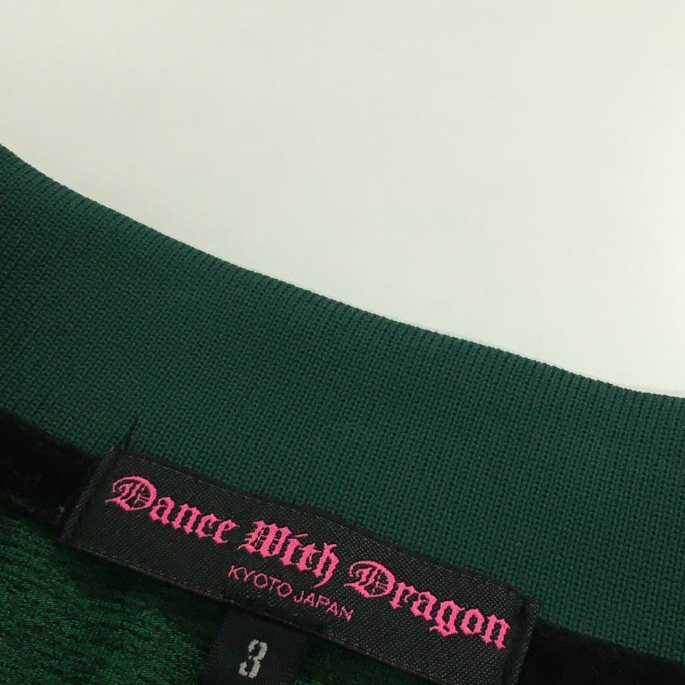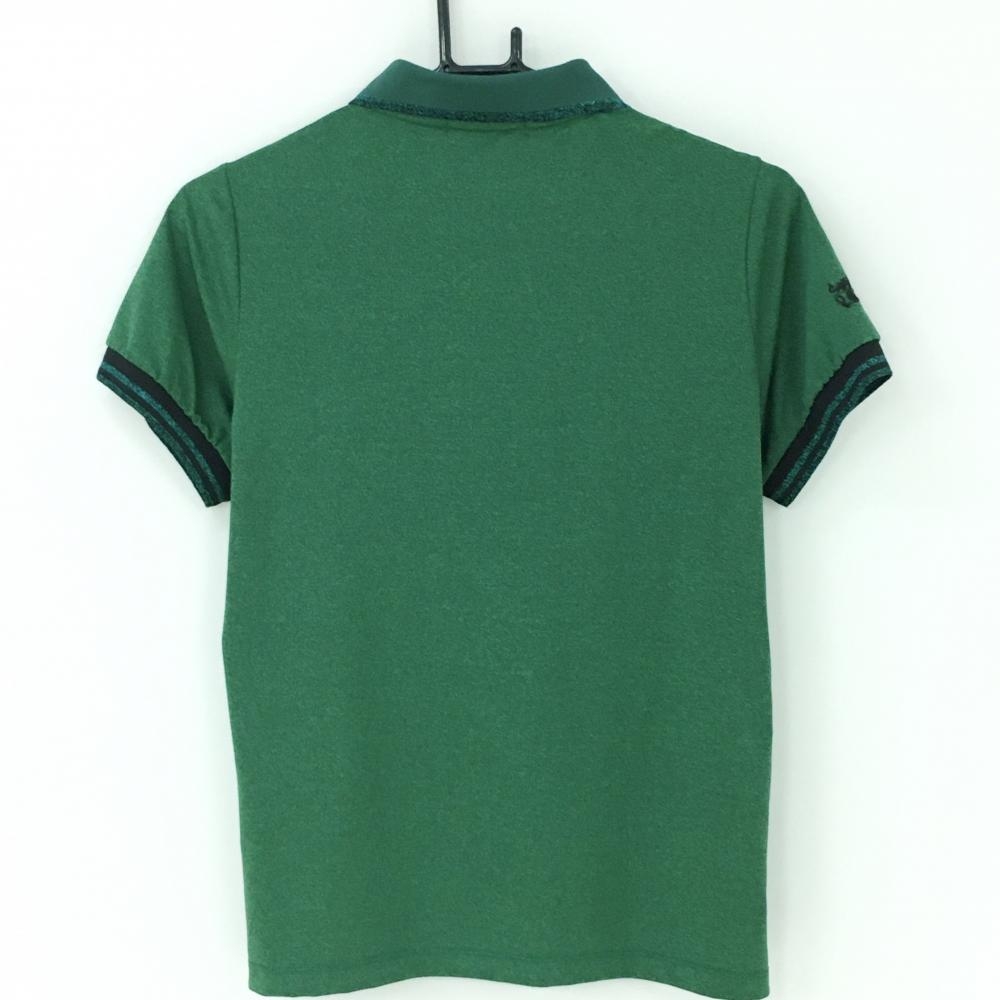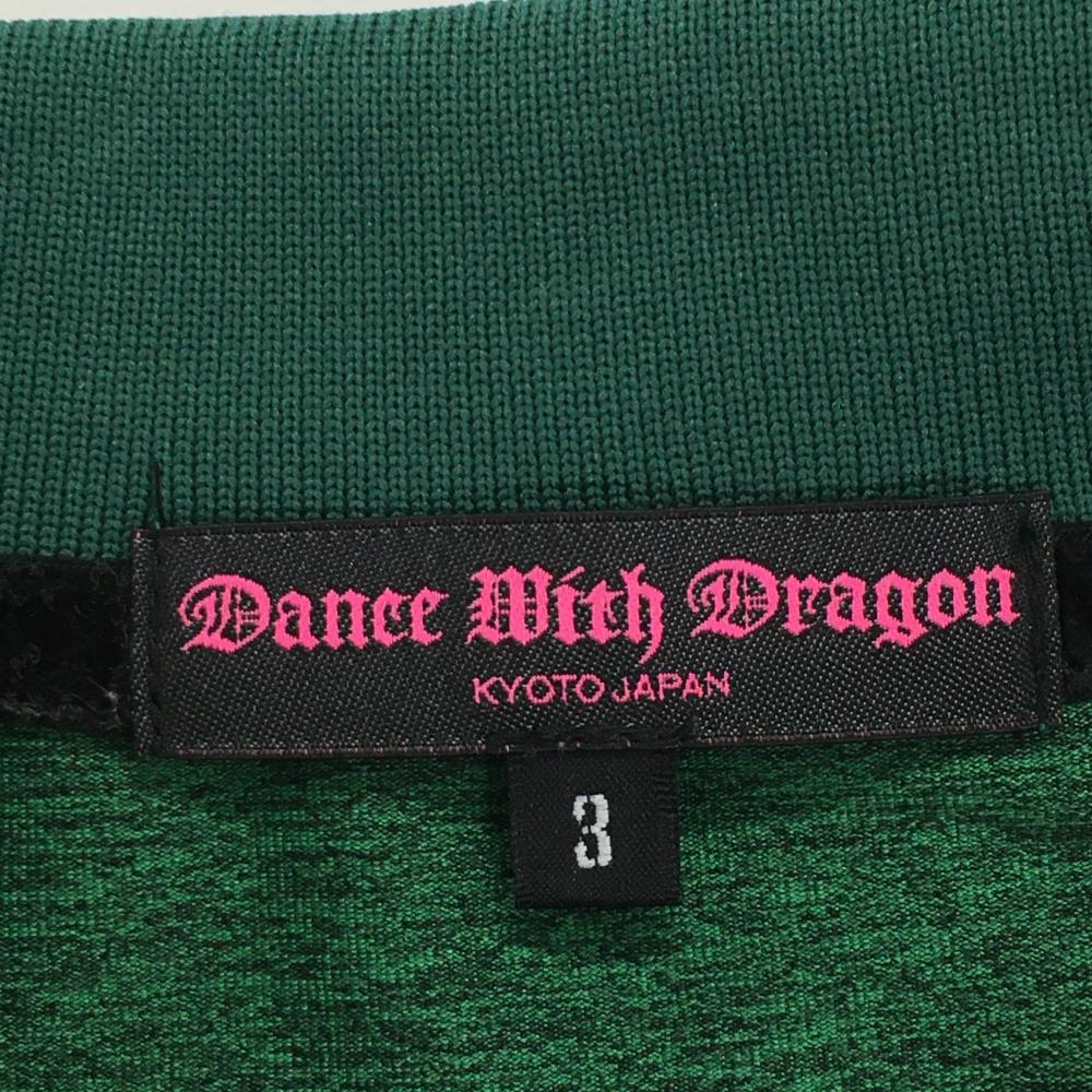 【美品】ダンスウィズドラゴン 半袖ポロシャツ 杢グリーン 襟袖口ラメライン レディース 3(L) ゴルフウェア Dance With Dragon