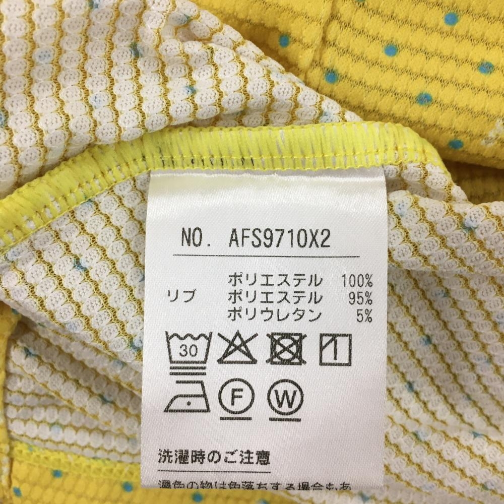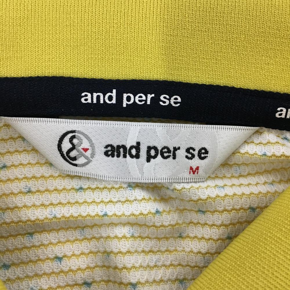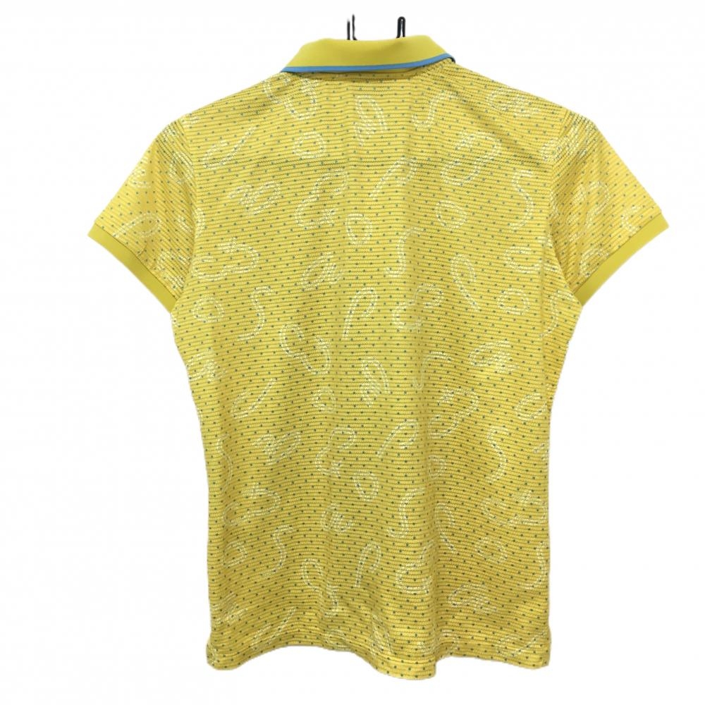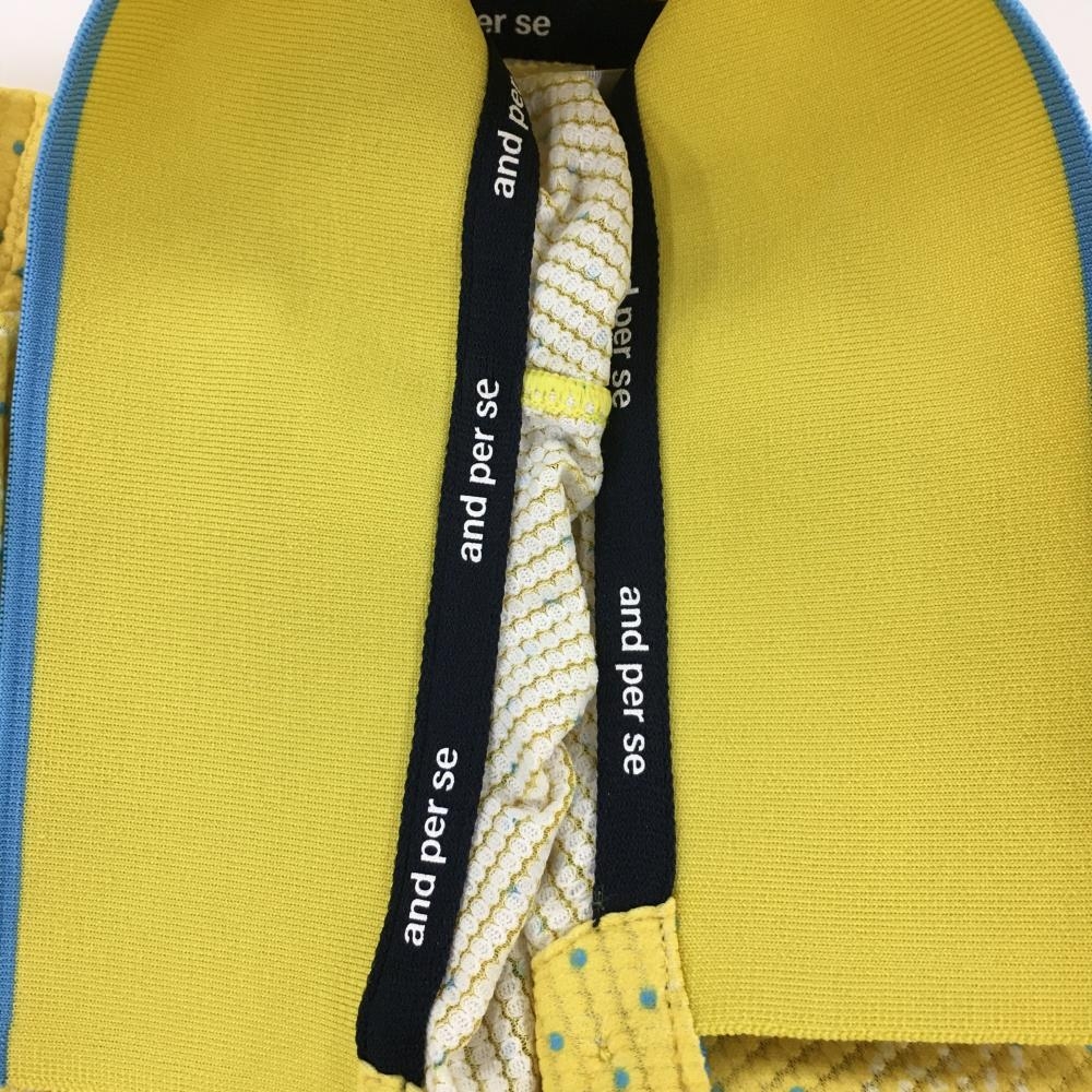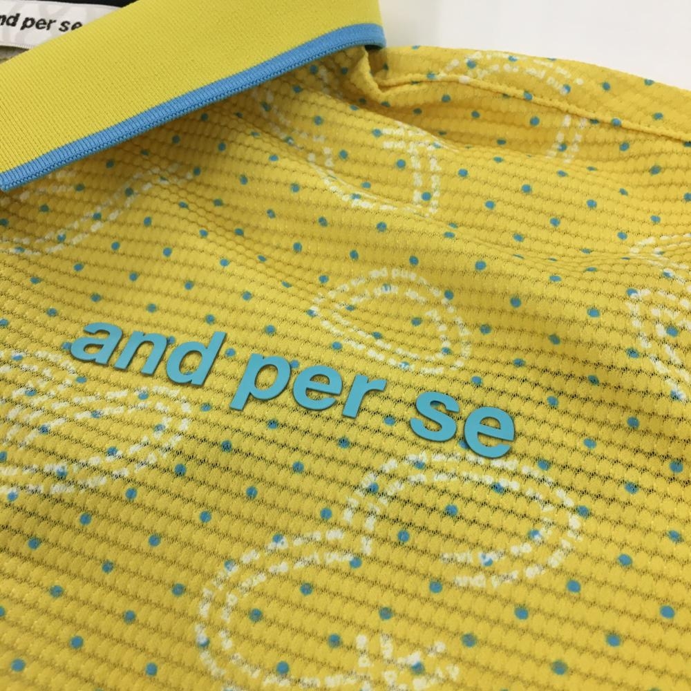 【美品】アンパスィ 半袖ポロシャツ イエロー×ライトブルー 織生地 ドット 胸ロゴプリント レディース M ゴルフウェア and per se