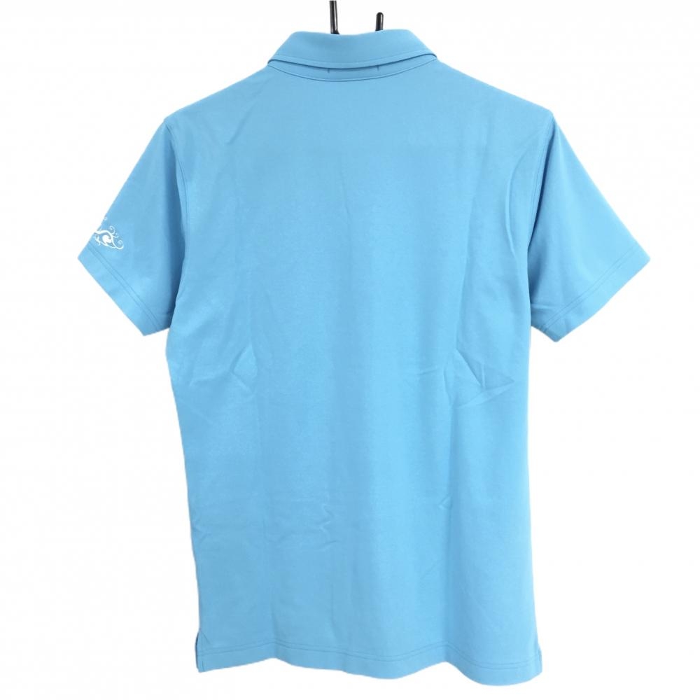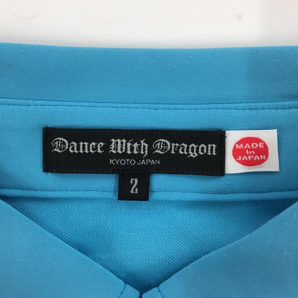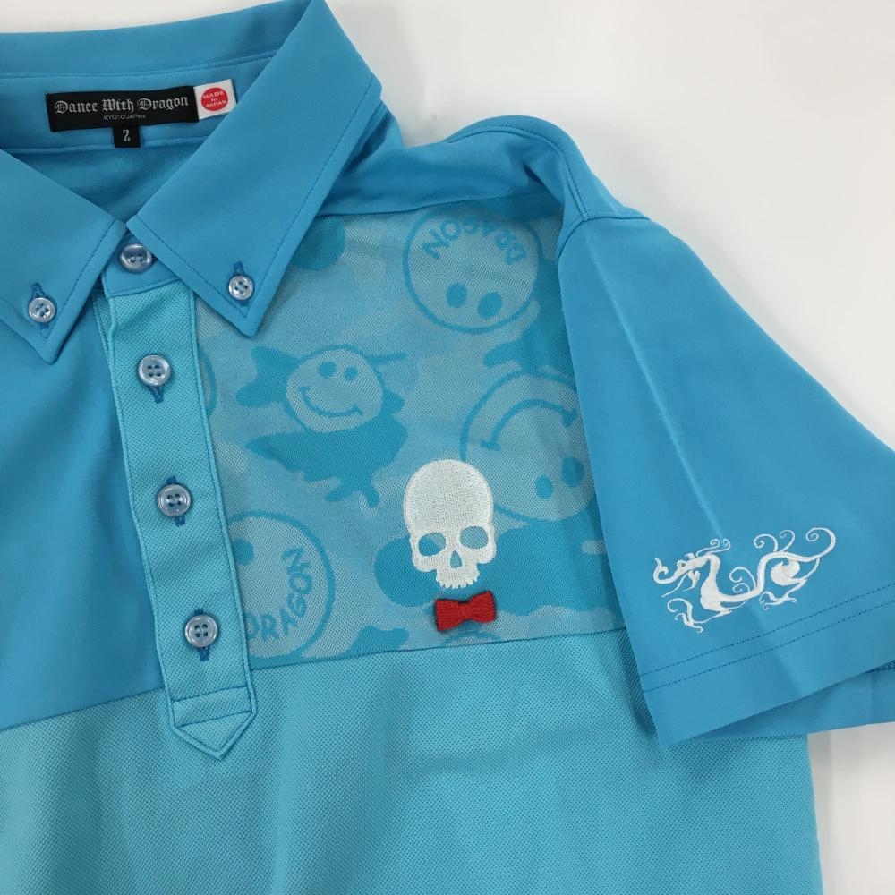 【超美品】ダンスウィズドラゴン 半袖ポロシャツ ライトブルー 前面切替 ニコちゃん柄 スカル メンズ 2(M) ゴルフウェア Dance With Dragon