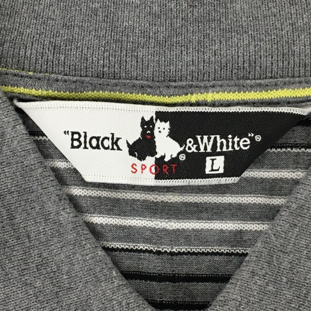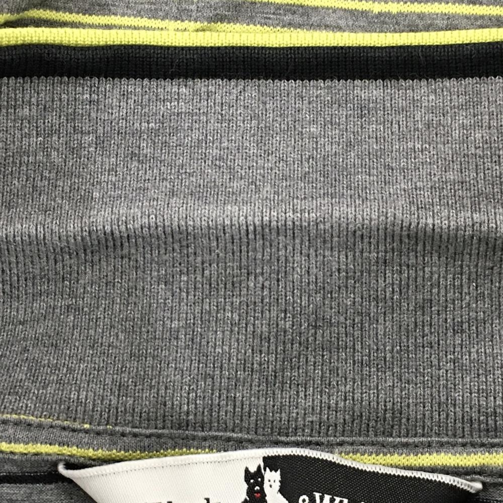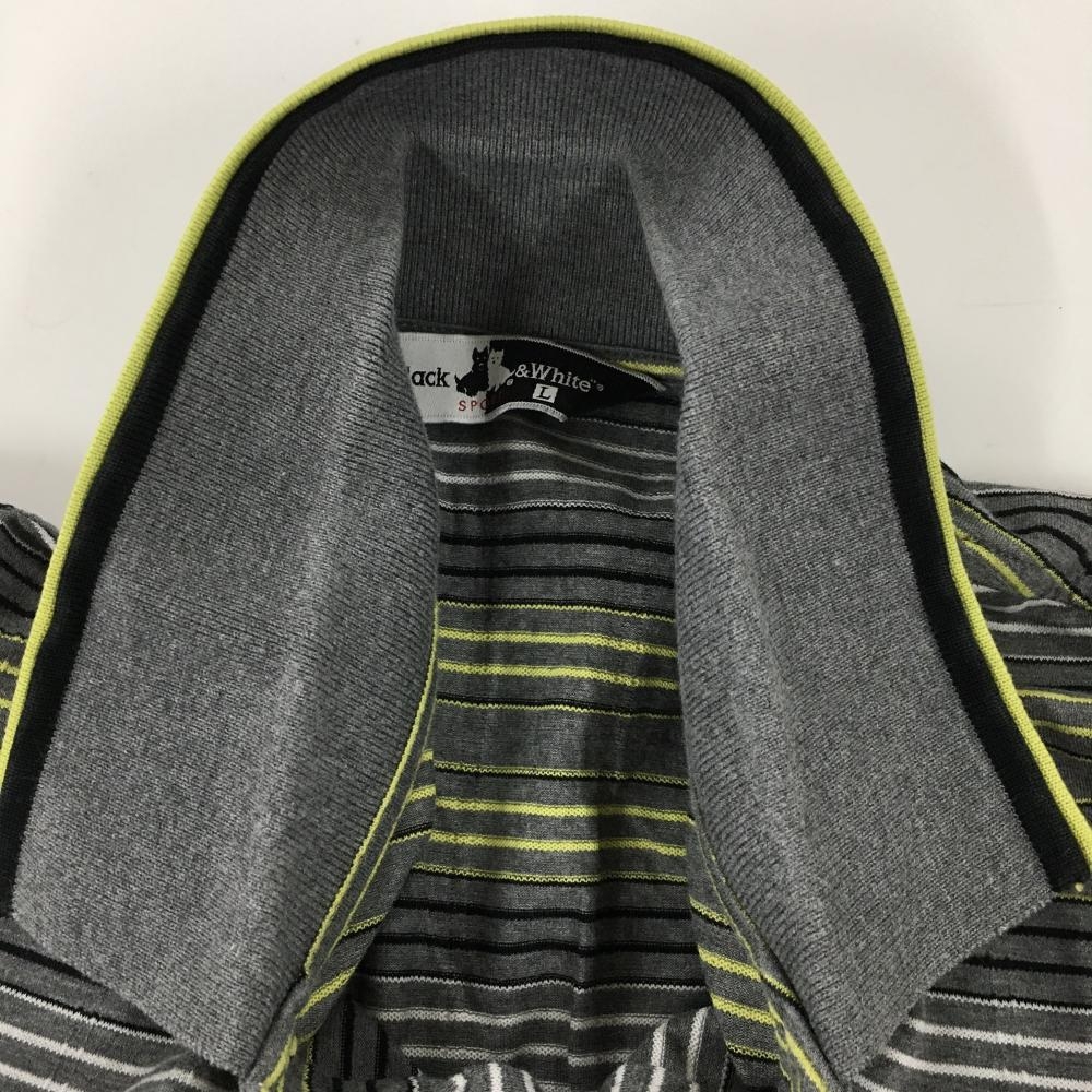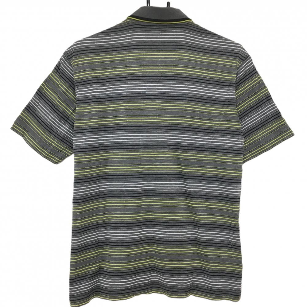 ブラックアンドホワイト 半袖ポロシャツ グレー×イエロー ボーダー 襟ライン メンズ M ゴルフウェア Black&White