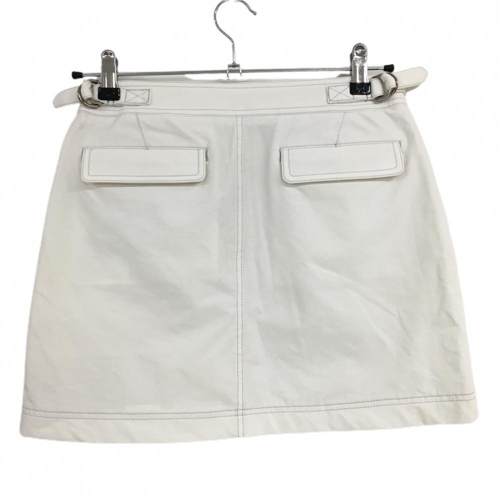 【超美品】アディダス スカート 白×ライトグレー ステッチ ロゴ刺しゅう ジップポケット レディース S/P ゴルフウェア adidas