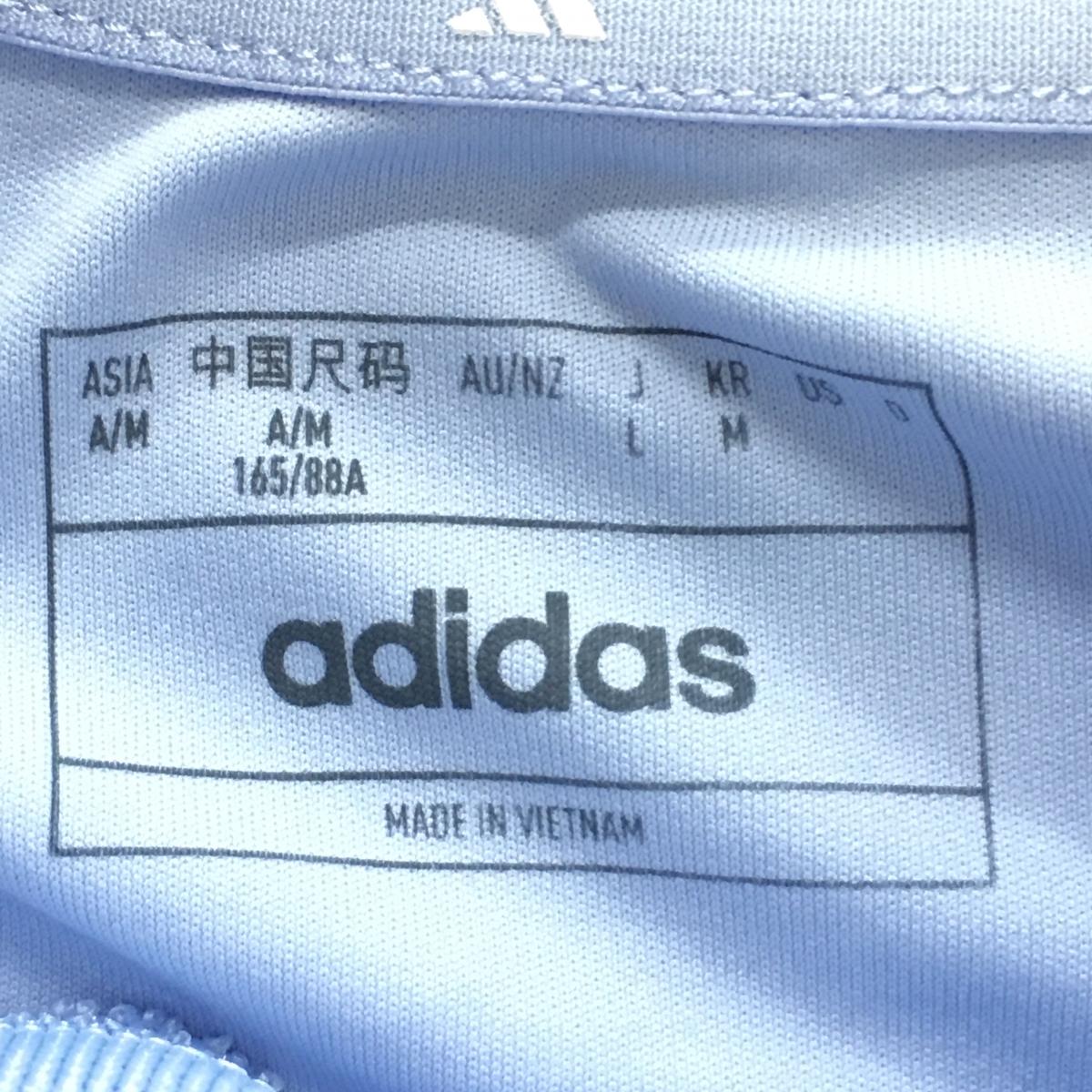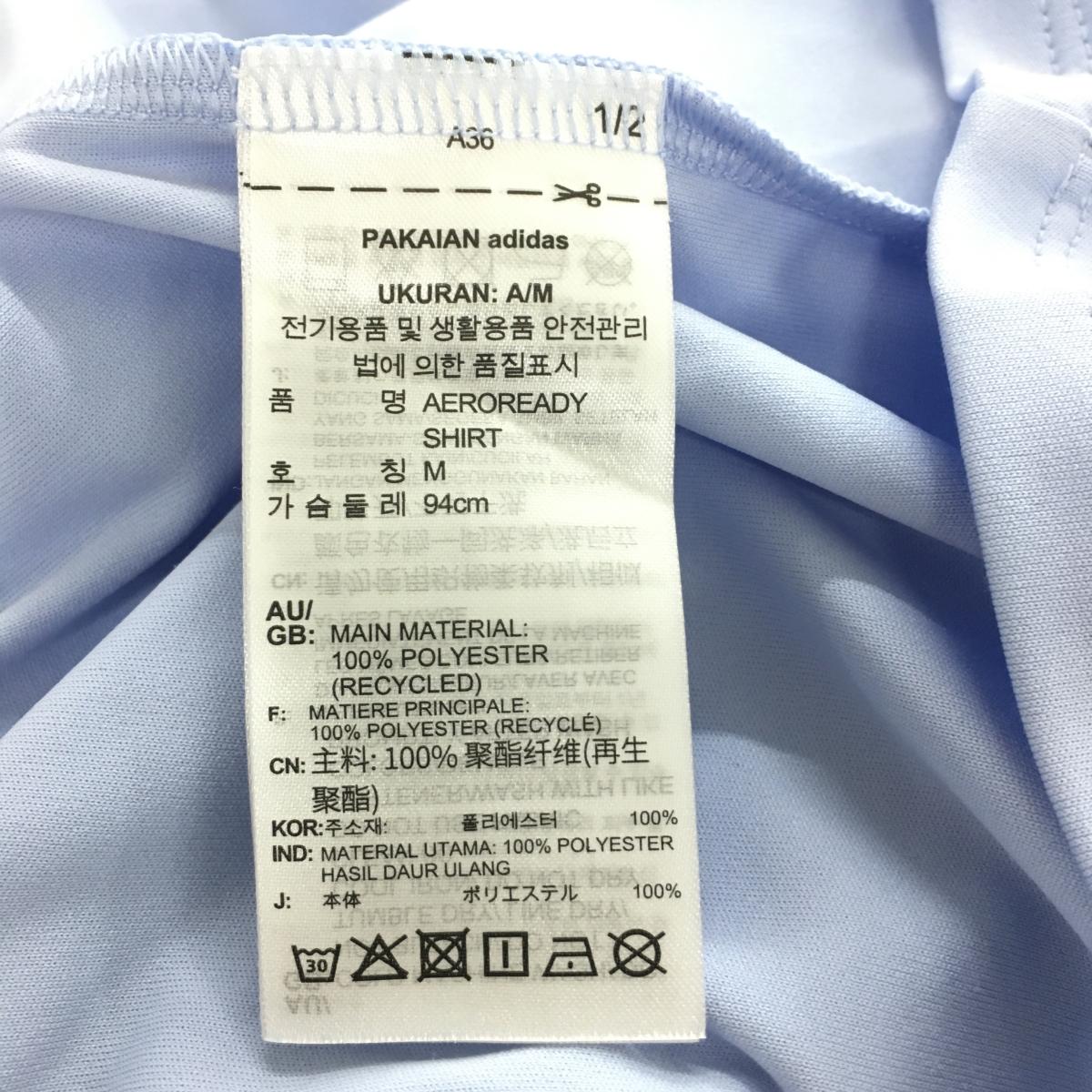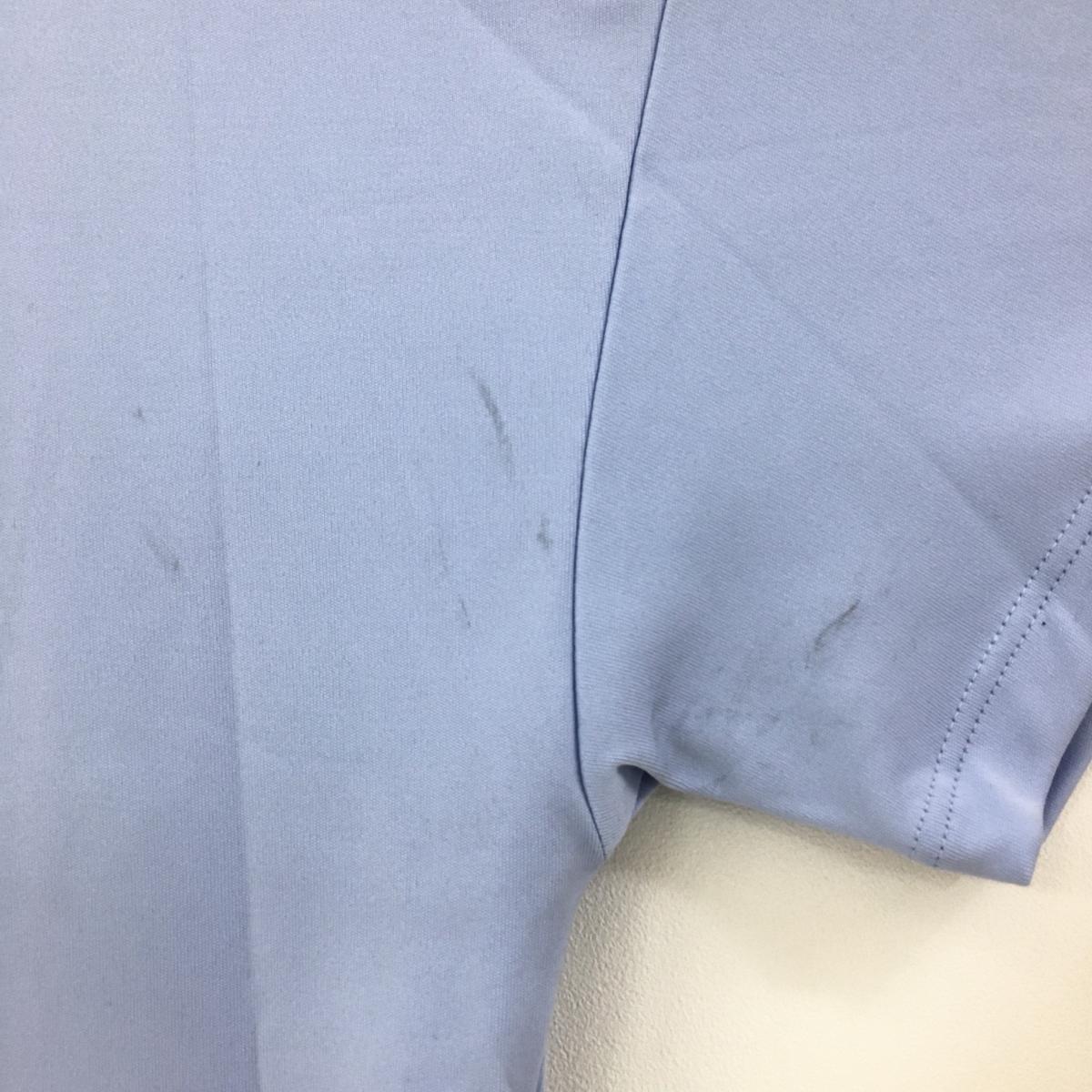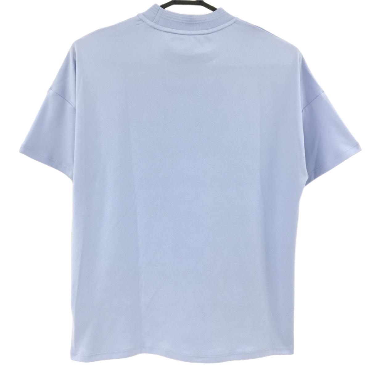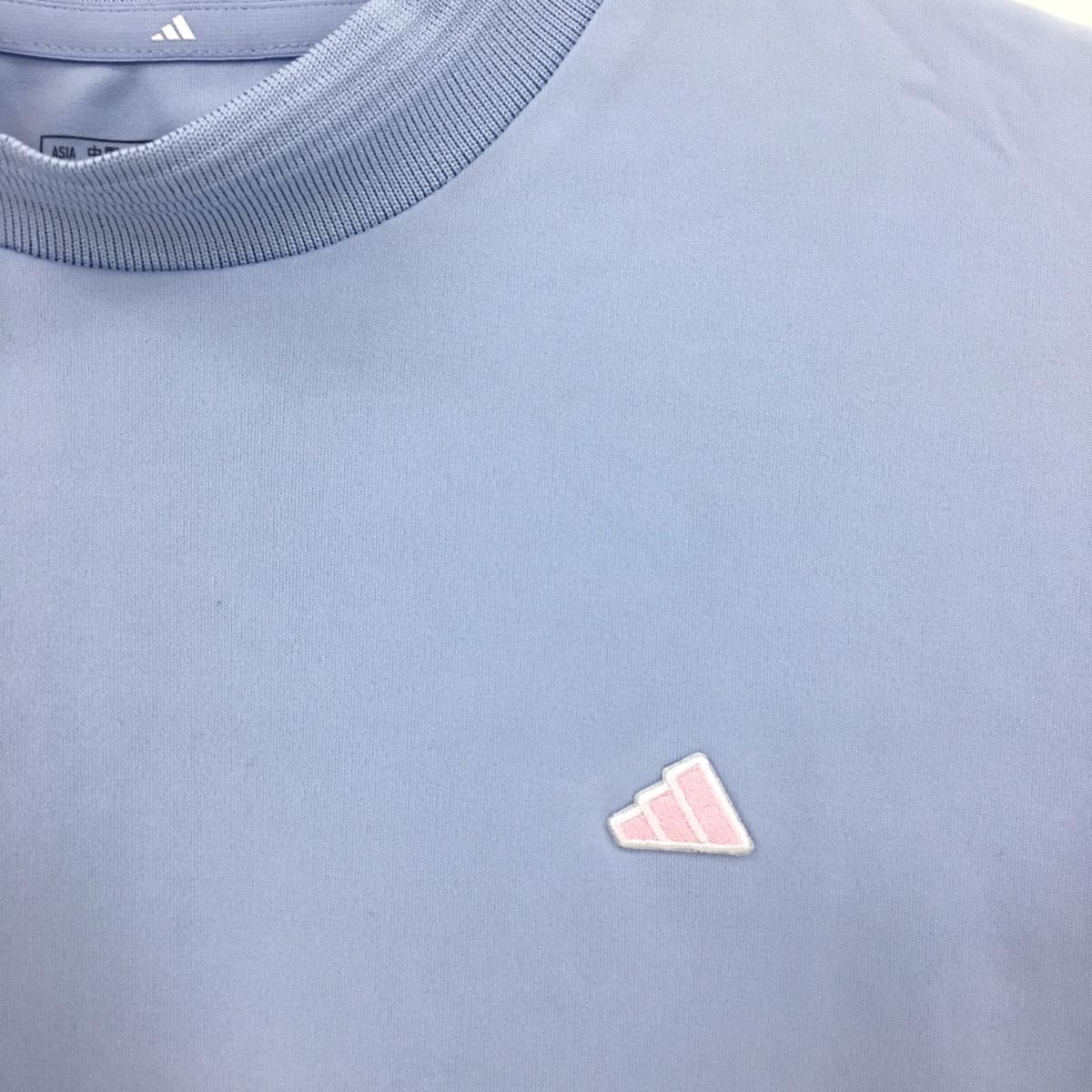 【美品】アディダス 半袖ハイネックシャツ ライトブルー ネックニット ロゴピンク レディース L ゴルフウェア 2022年モデル adidas