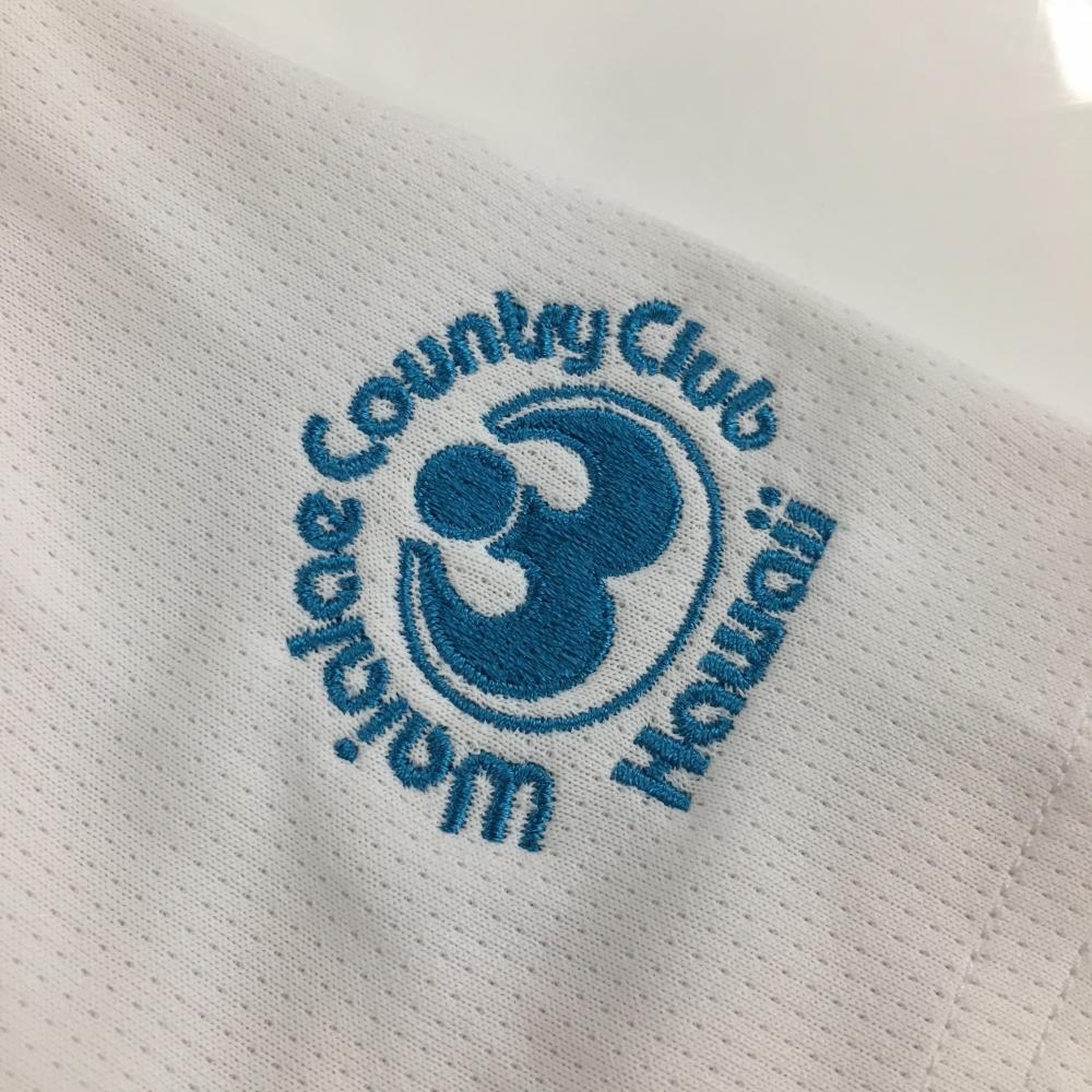 【美品】アディダス 半袖ポロシャツ 白×ライトブルー 肩ライン ワイアラエカントリークラブ レディース OT ゴルフウェア adidas