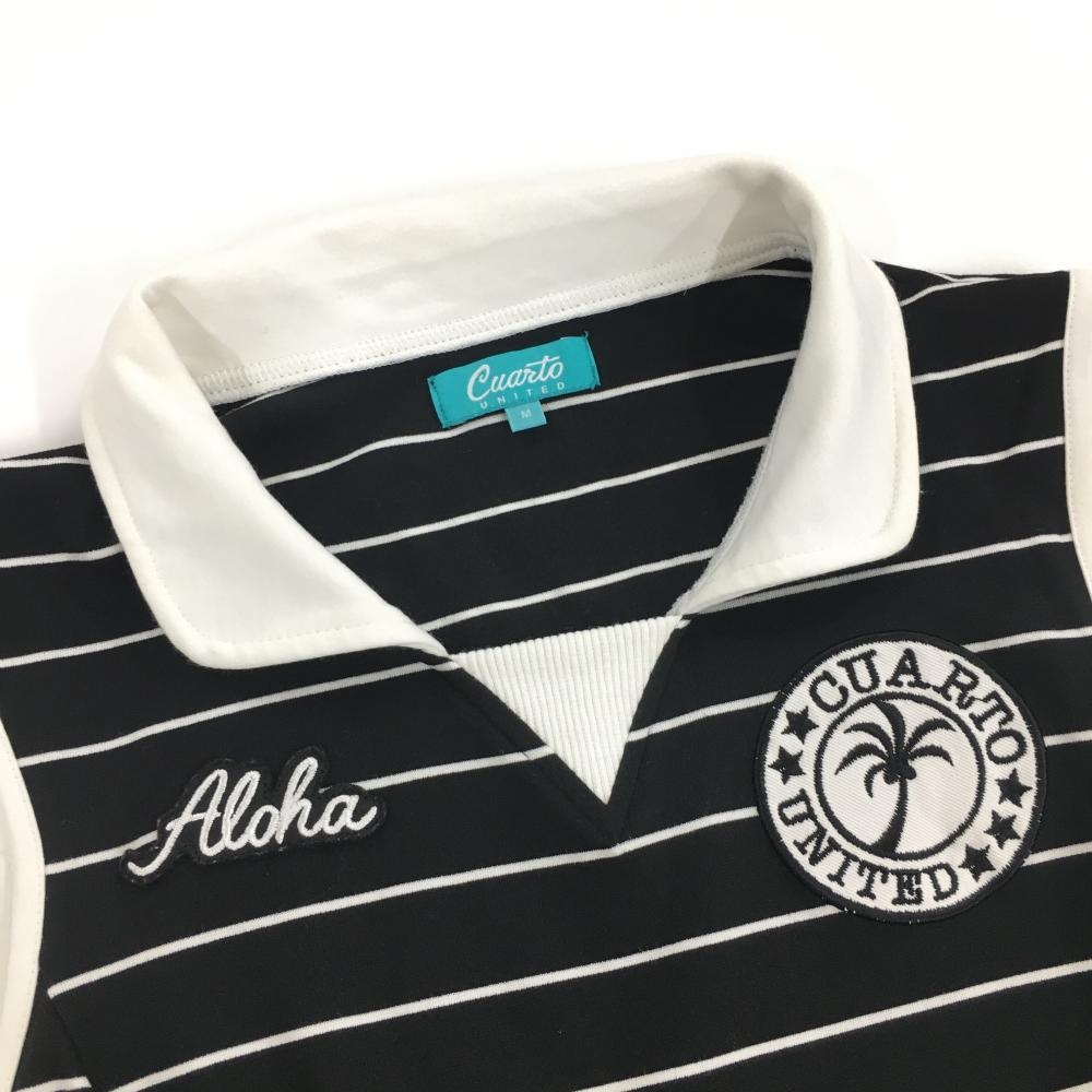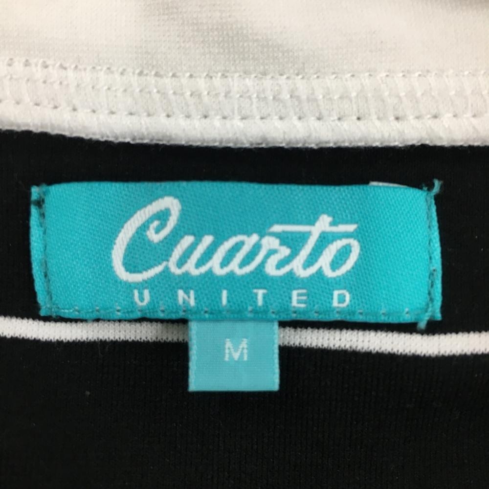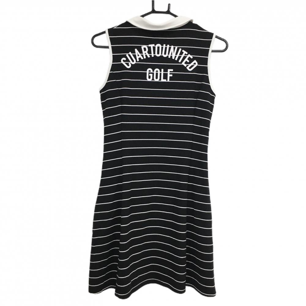 【美品】クアルトユナイテッド ノースリーブワンピース 黒×白 ボーダー 背面プリント レディース M ゴルフウェア CUARTO UNITED