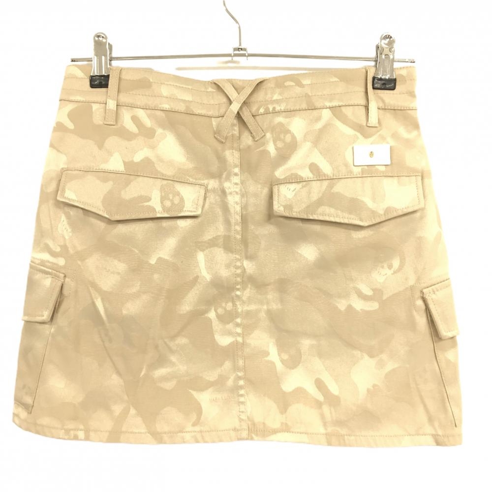 【美品】マークアンドロナ スカート ベージュ カモフラ×スカル 迷彩 レディース S ゴルフウェア MARK&LONA