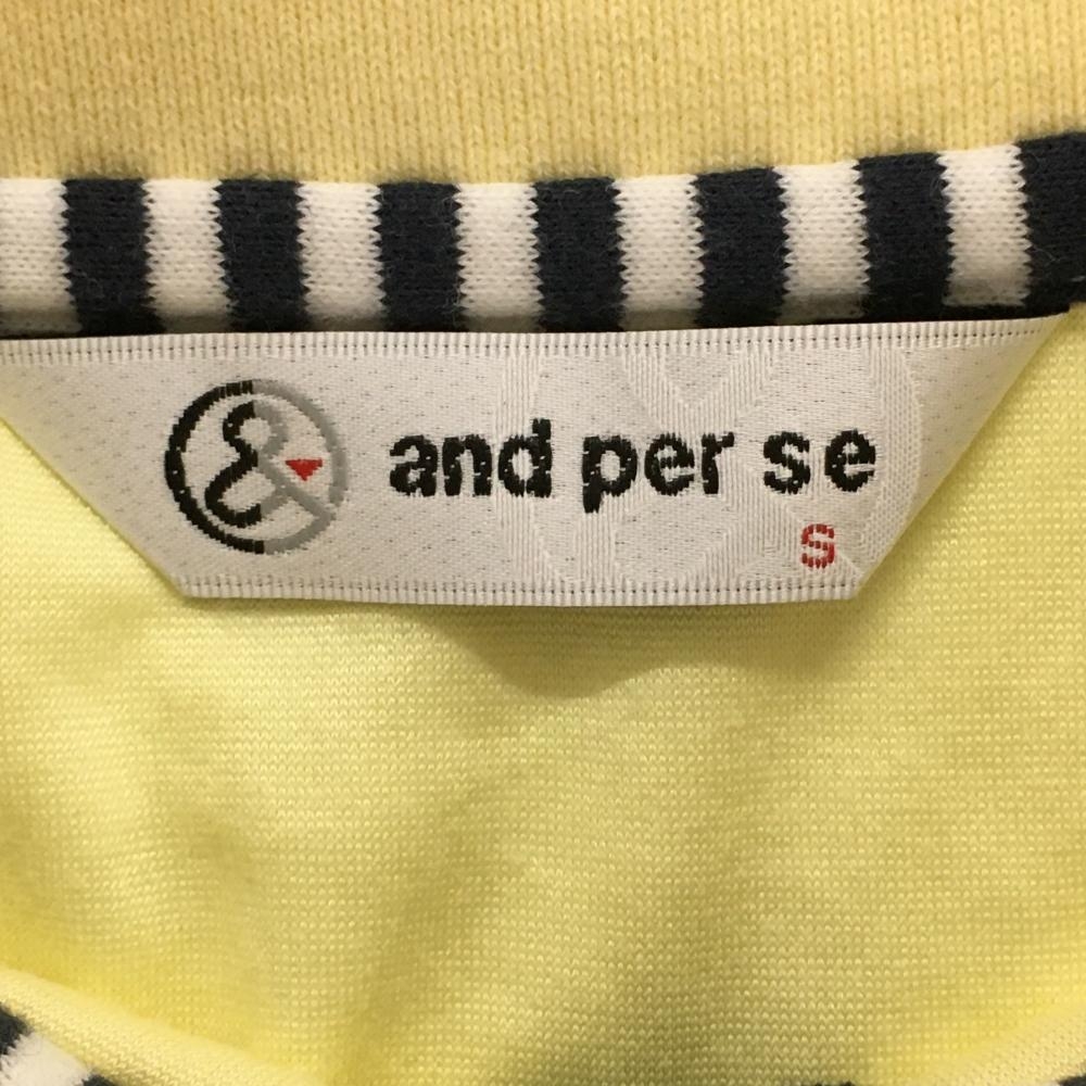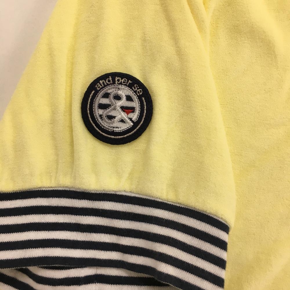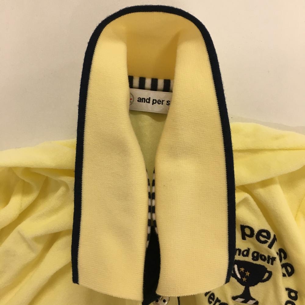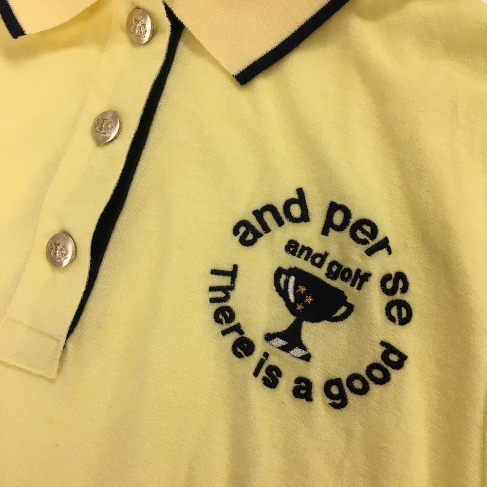 アンパスィ 半袖ポロシャツ イエロー×ネイビー パイル生地 胸刺しゅう レディース S ゴルフウェア and per se