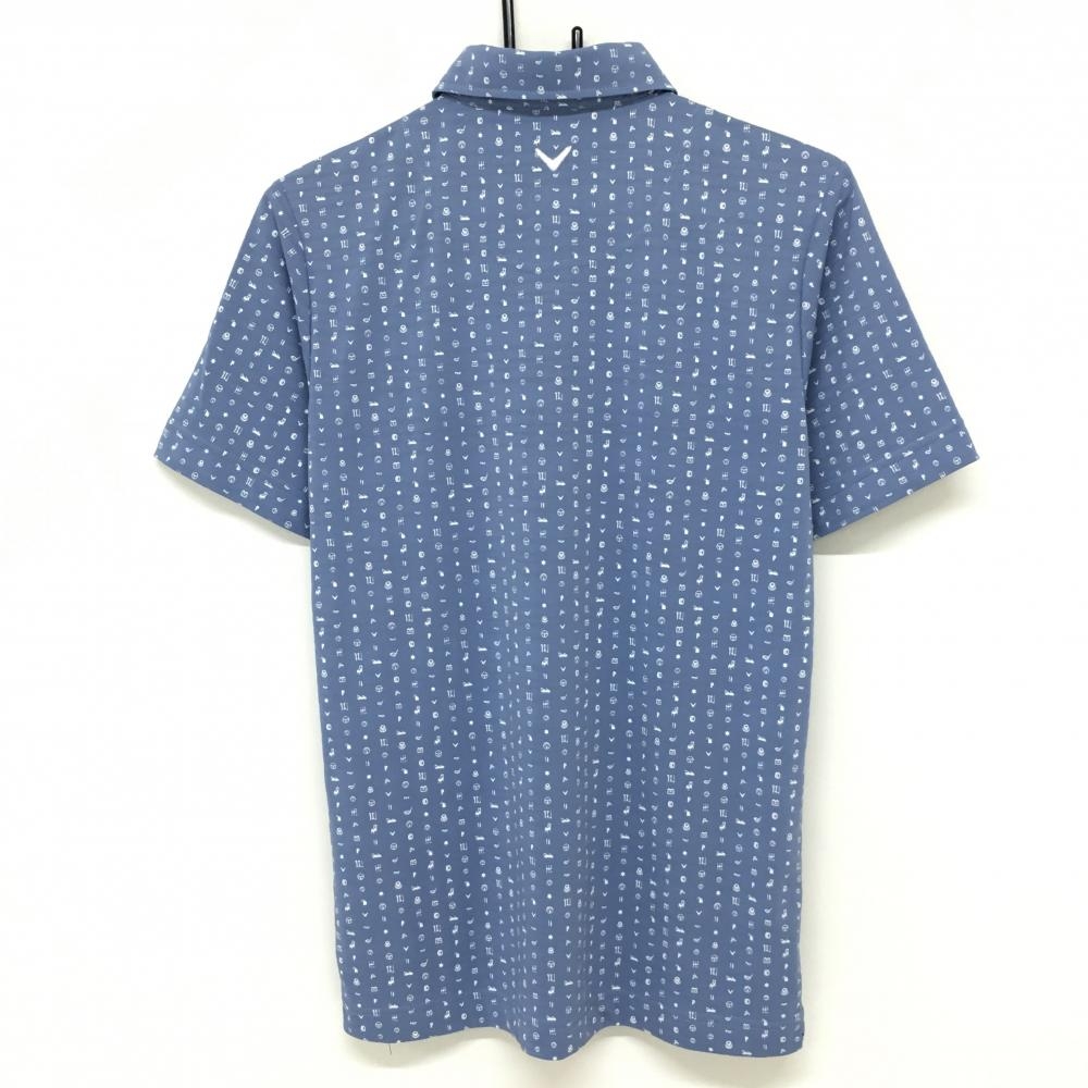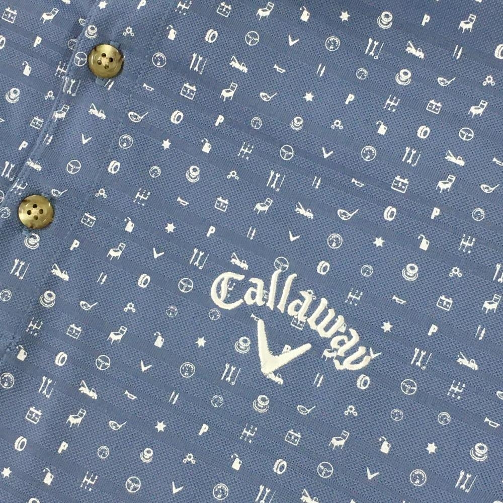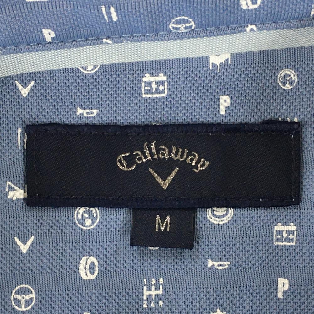 【美品】キャロウェイ 半袖ポロシャツ ライトブルー×白 総柄プリント ボーダー織生地 メンズ M ゴルフウェア Callaway