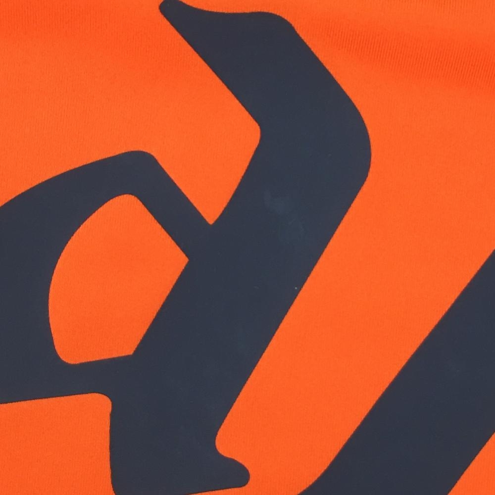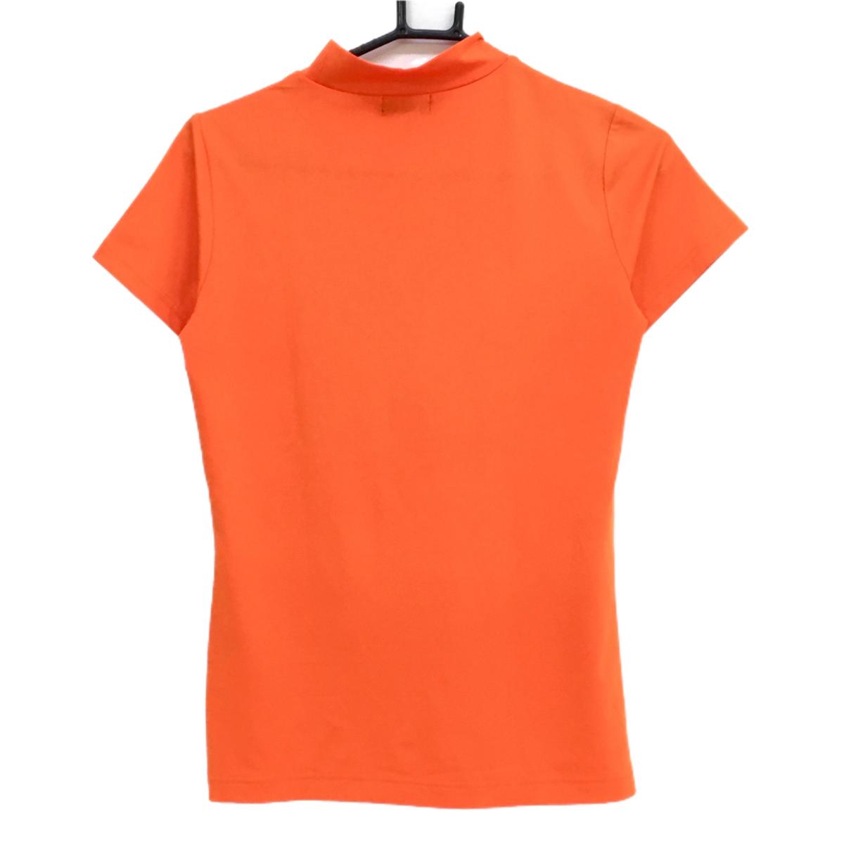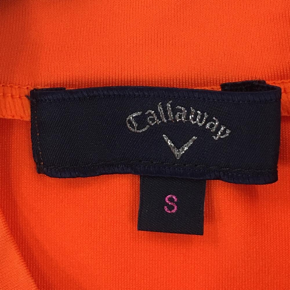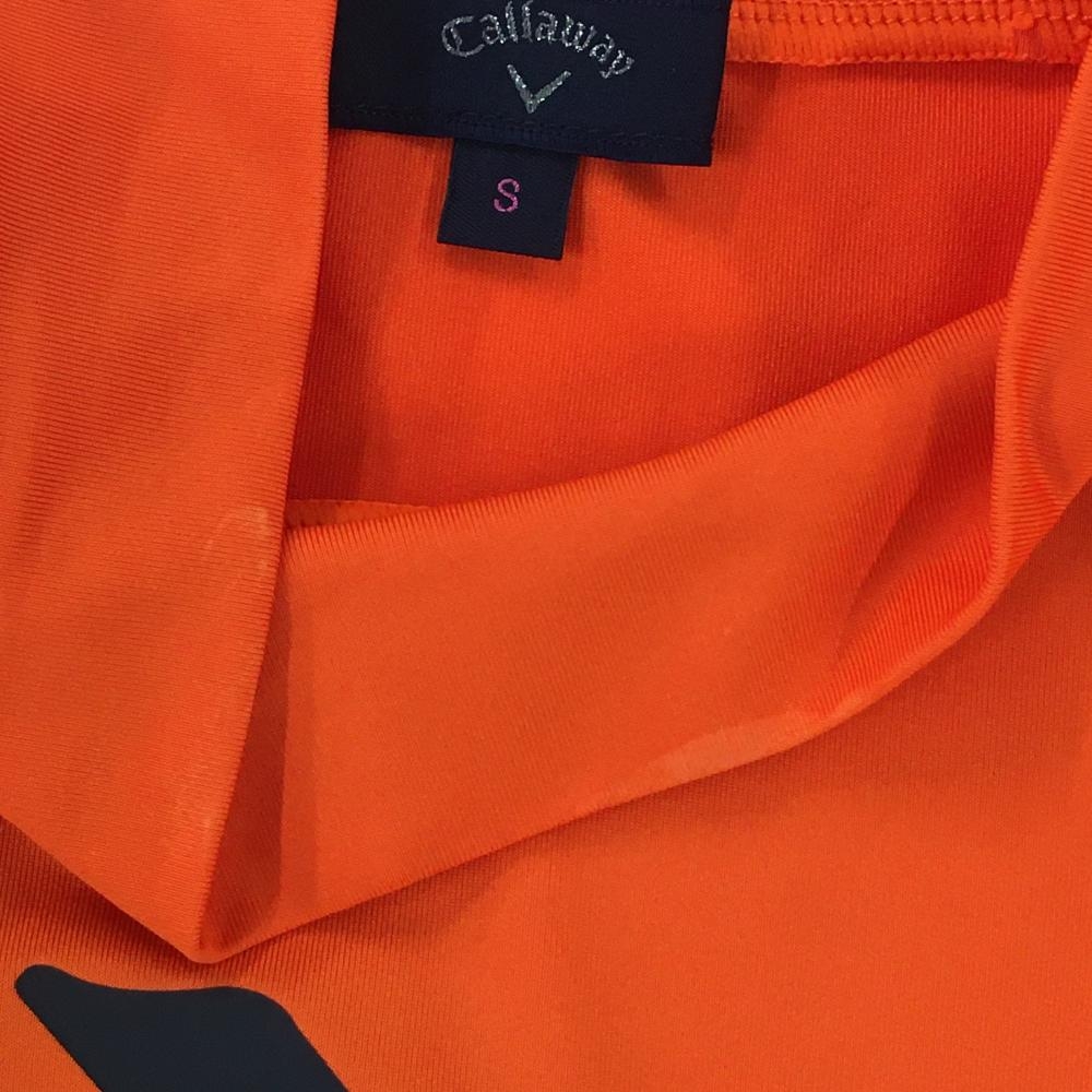 【超美品】キャロウェイ 半袖ハイネックシャツ オレンジ×グレー ビッグロゴ ロゴ擦れ少 レディース S ゴルフウェア 2023年モデル Callaway