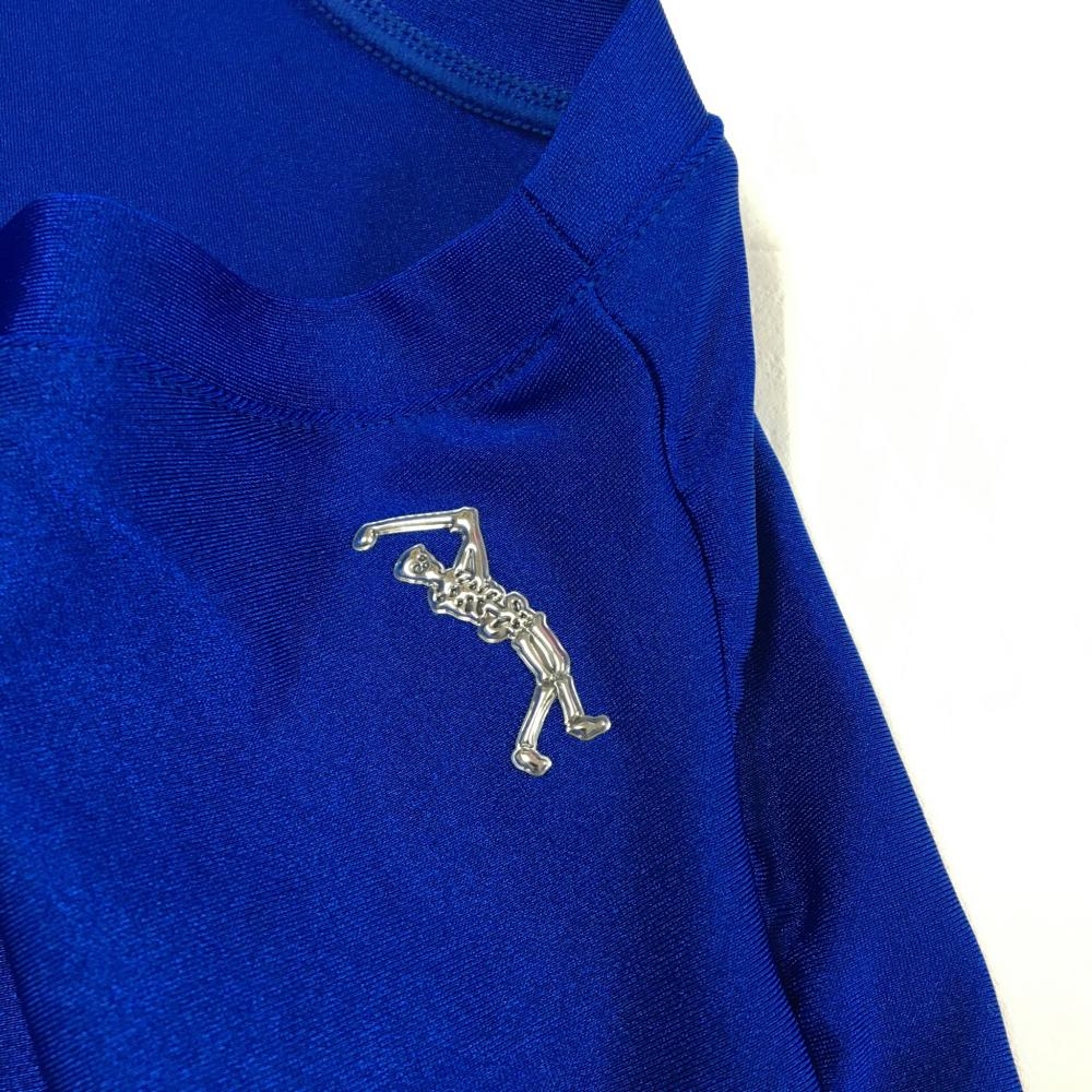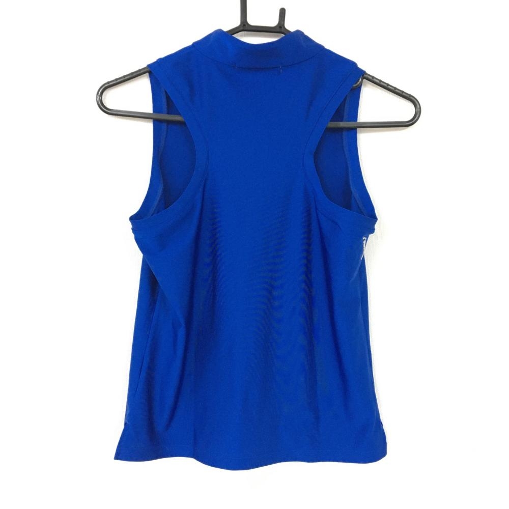 【超美品】マークアンドロナ ノースリーブシャツ ブルー×イエロー ストレッチ スキッパー スカル レディース S ゴルフウェア MARK&LONA