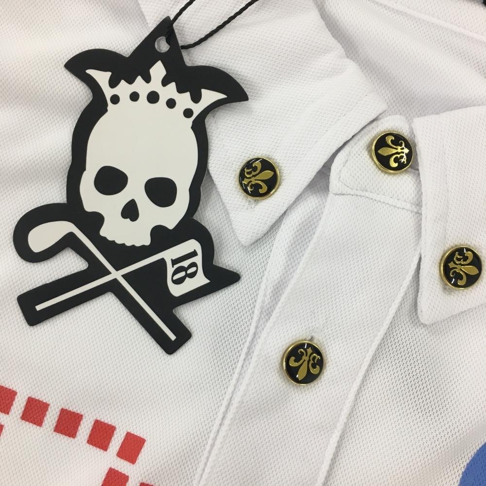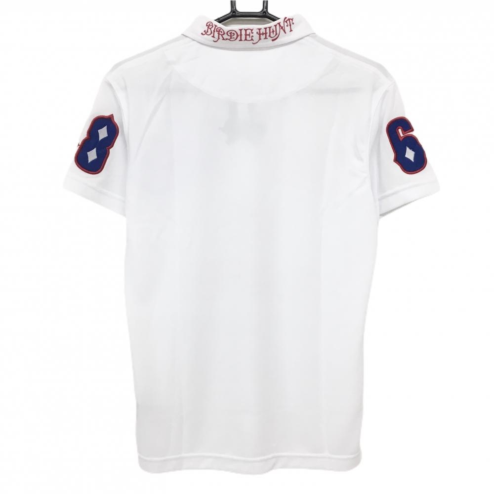 【新品】バーディーハント 半袖ポロシャツ 白×レッド ボタンダウン 後ろ襟ロゴ メンズ S ゴルフウェア Birdie hunt