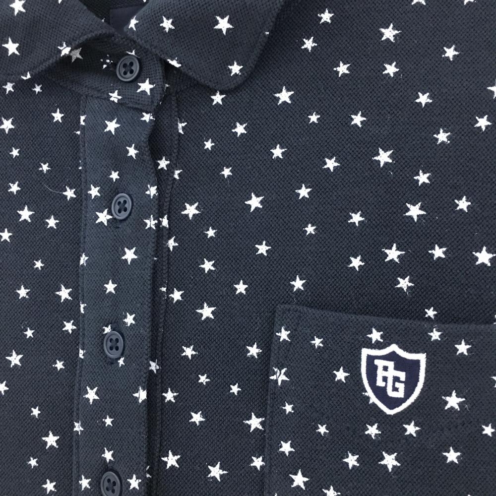 【超美品】パーリーゲイツ 長袖ポロシャツ ネイビー×白 星柄 レディース 0(S) ゴルフウェア PEARLY GATES