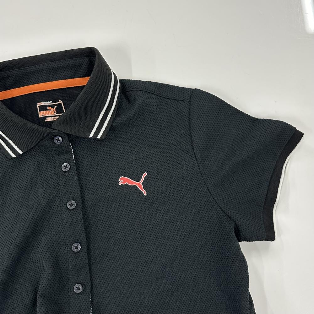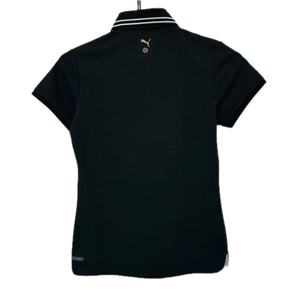 【美品】プーマ 半袖ポロシャツ 黒 襟・袖ライン 胸刺しゅう USPDRY 袖下色褪せ少 レディース S ゴルフウェア PUMA