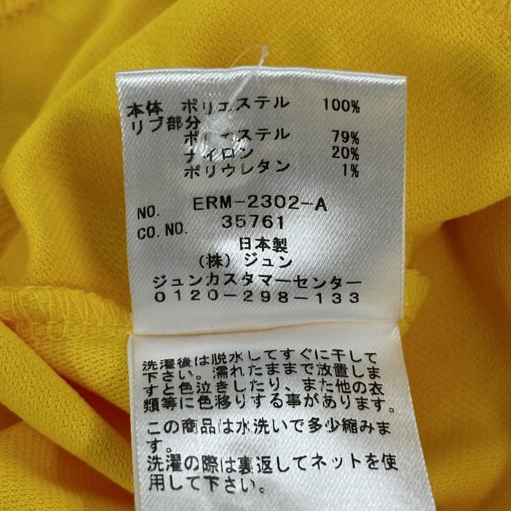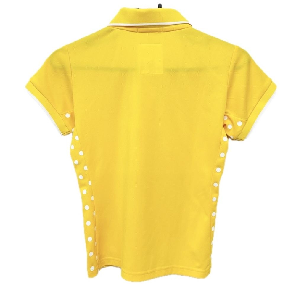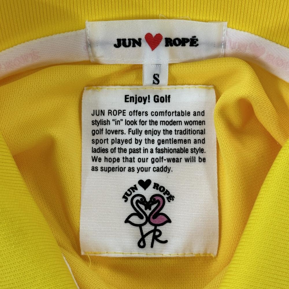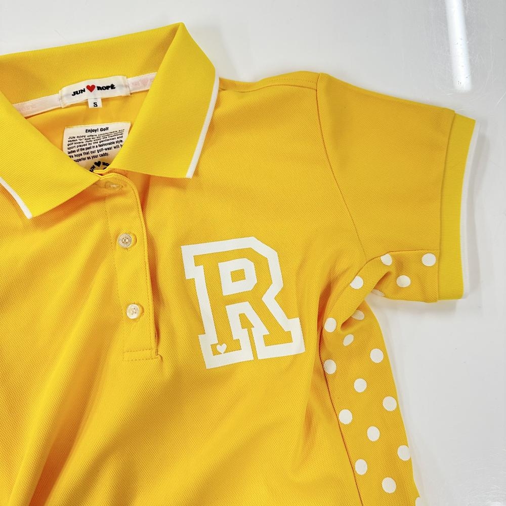 ジュンアンドロペ 半袖ポロシャツ イエロー サイドドット 襟・袖ライン 胸プリント レディース S ゴルフウェア JUN&ROPE
