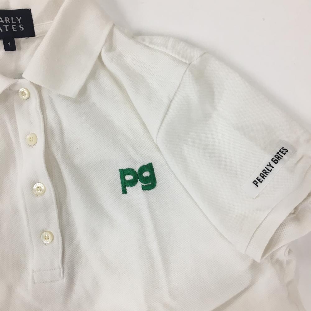【美品】パーリーゲイツ 半袖ポロシャツ 白×グリーン カメレオン刺しゅう コットン100% レディース 1(M) ゴルフウェア PEARLY GATES