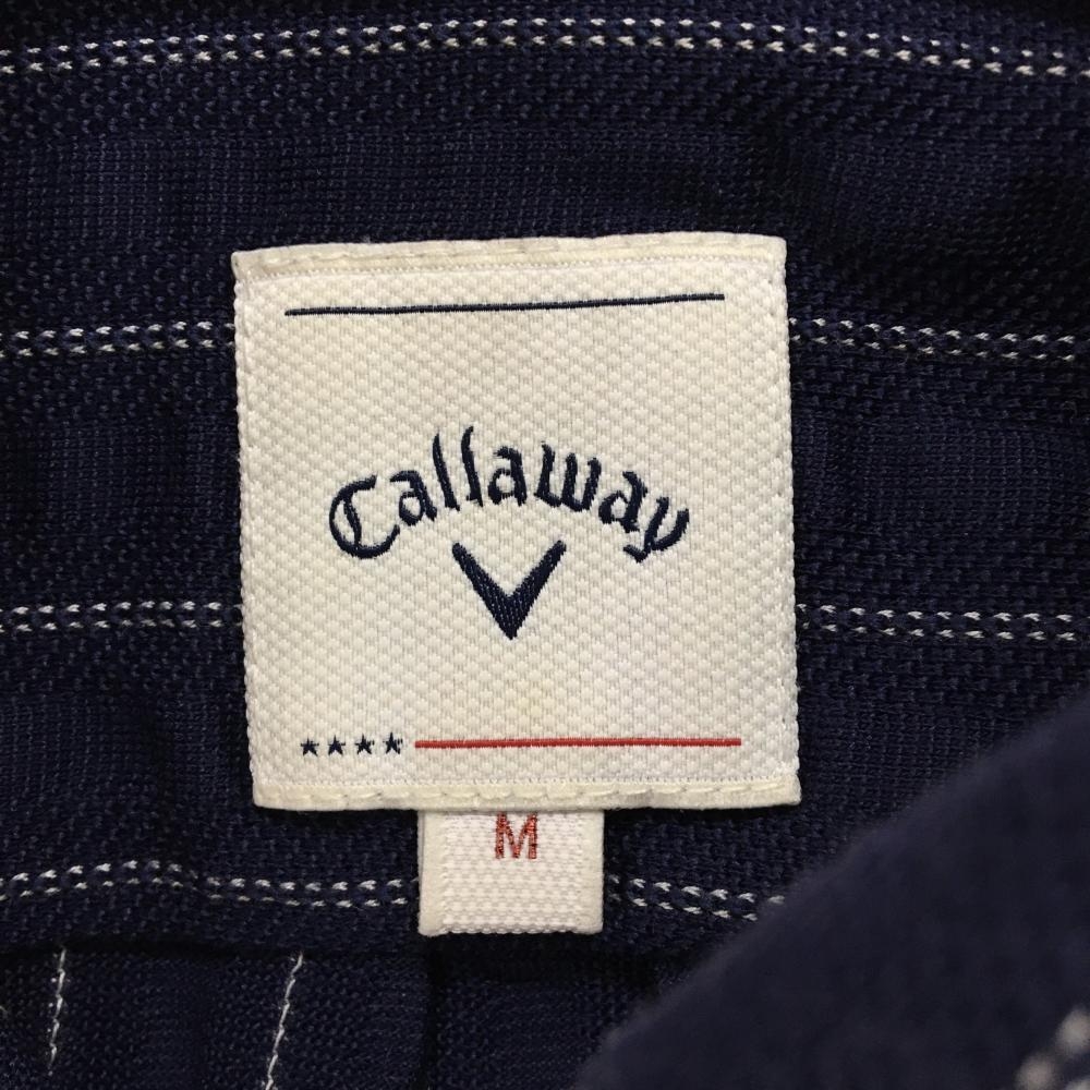キャロウェイ 長袖ポロシャツ ネイビー×白 ストライプ柄 レディース M ゴルフウェア Callaway
