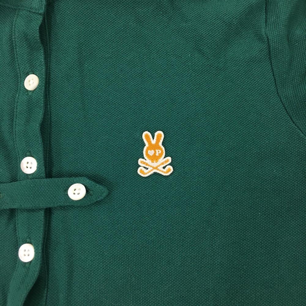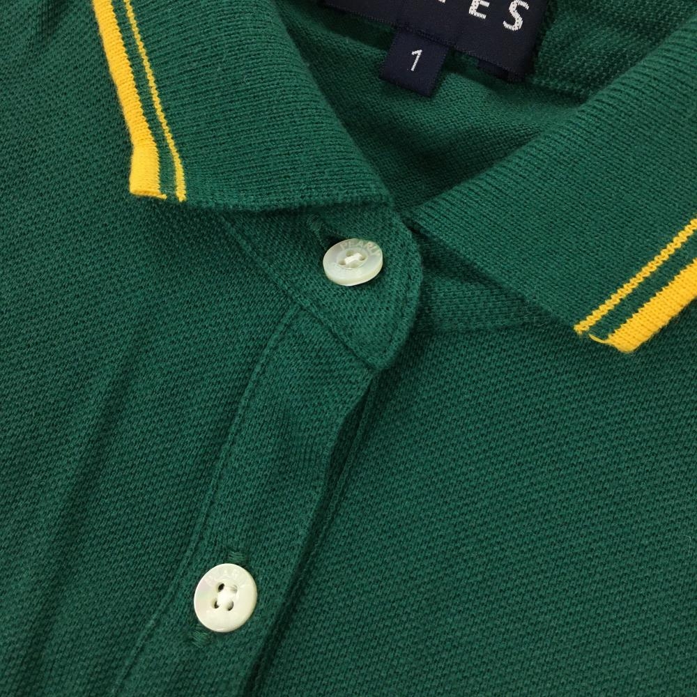 【美品】パーリーゲイツ 半袖ポロシャツ グリーン×イエロー スカルラビット コットン100% レディース 1(M) ゴルフウェア PEARLY GATES