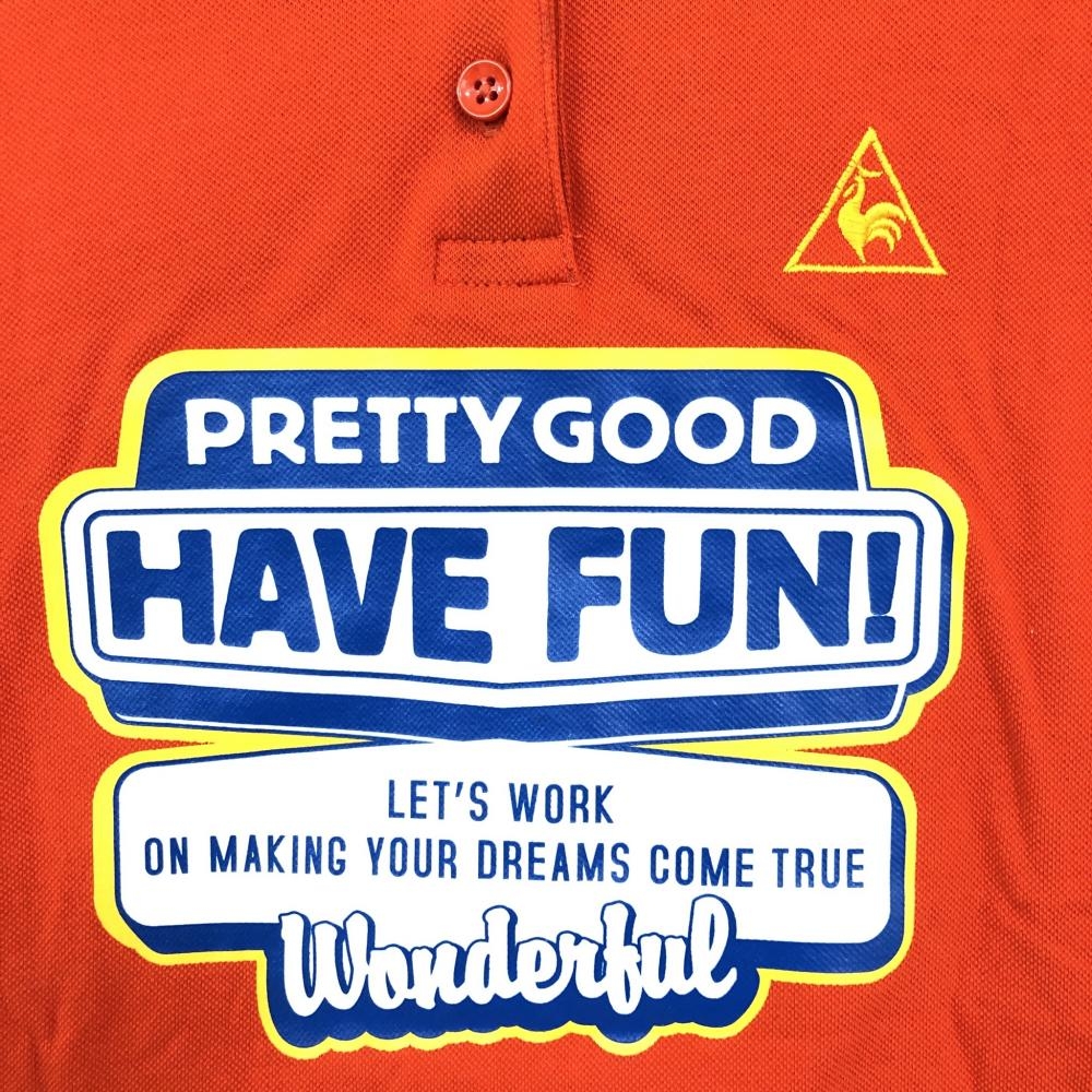 【美品】ルコック 半袖ポロシャツ レッド×白 Tight Fit プリント レディース M ゴルフウェア le coq sportif