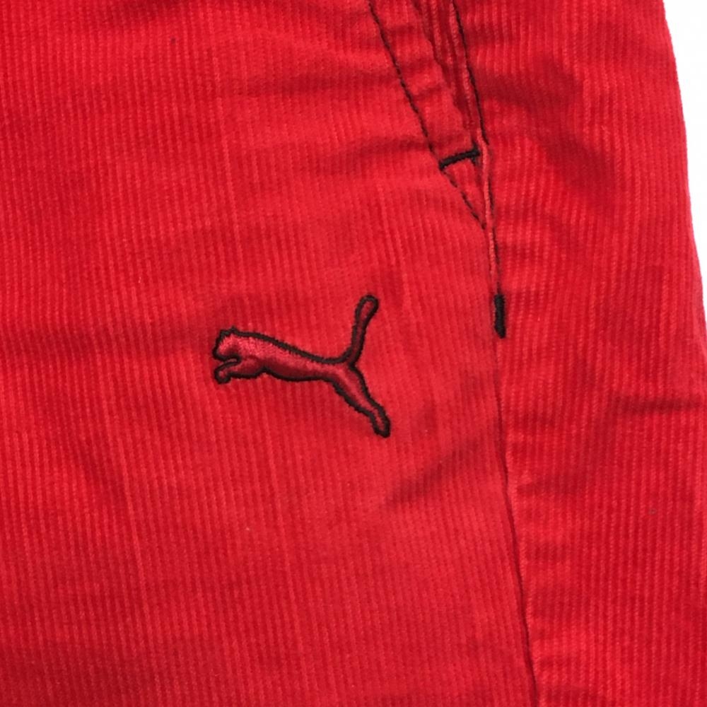 【美品】プーマ コーデュロイパンツ レッド ロゴ刺しゅう メンズ 76 ゴルフウェア PUMA
