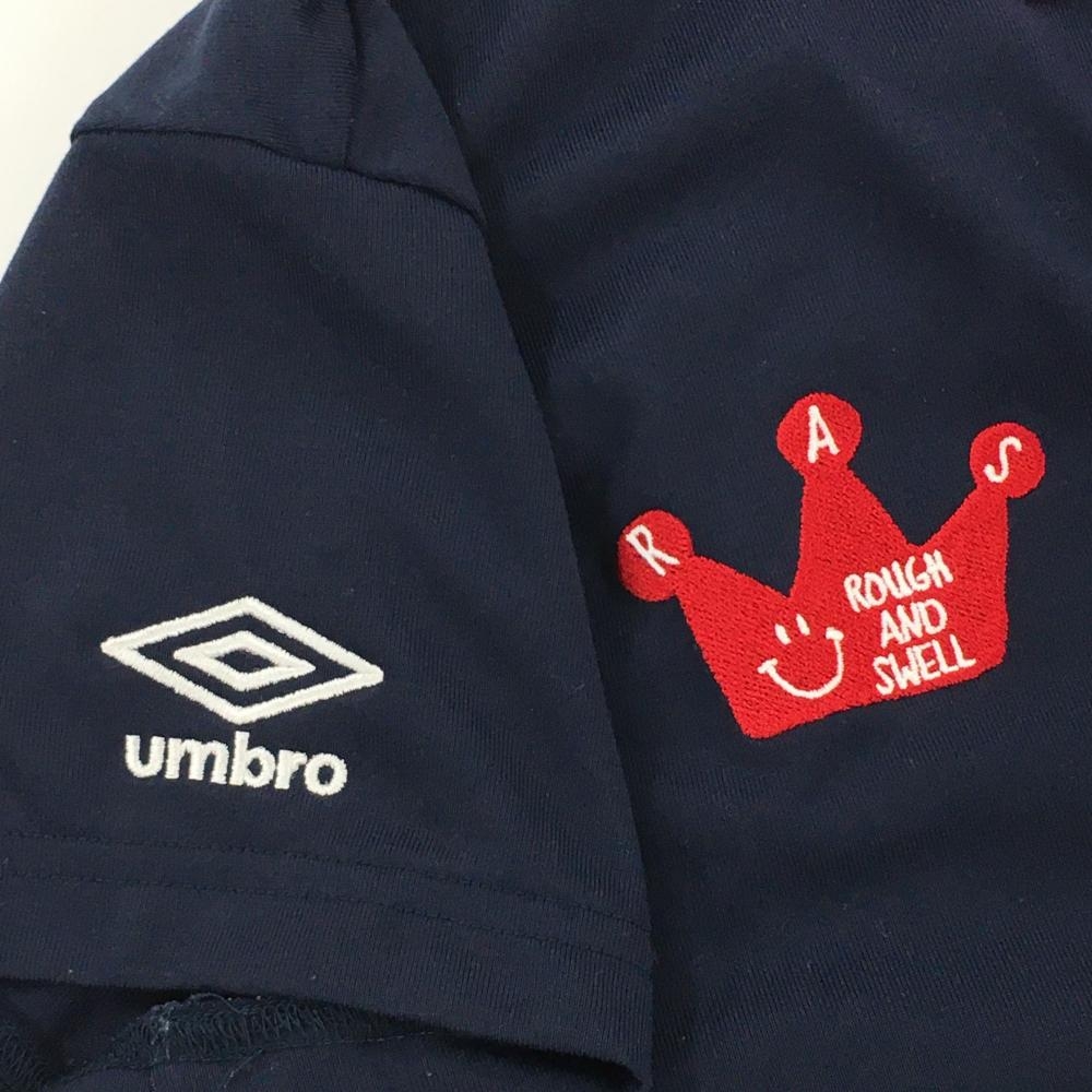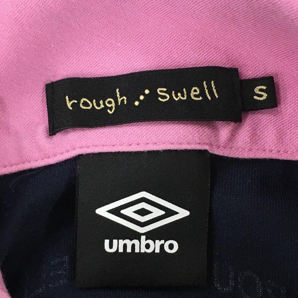 ラフアンドスウェル×アンブロ 半袖ポロシャツ ネイビー×ピンク レディース S ゴルフウェア rough&swell