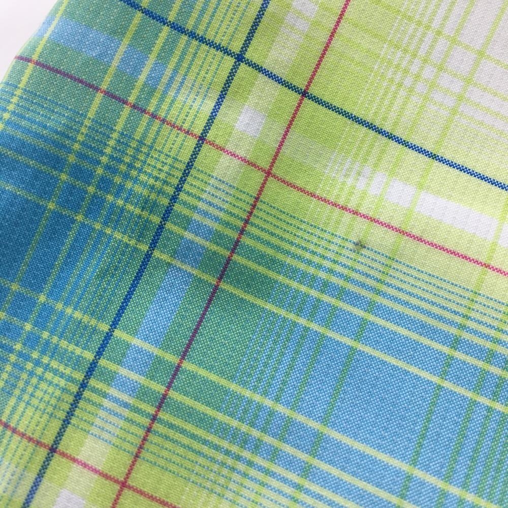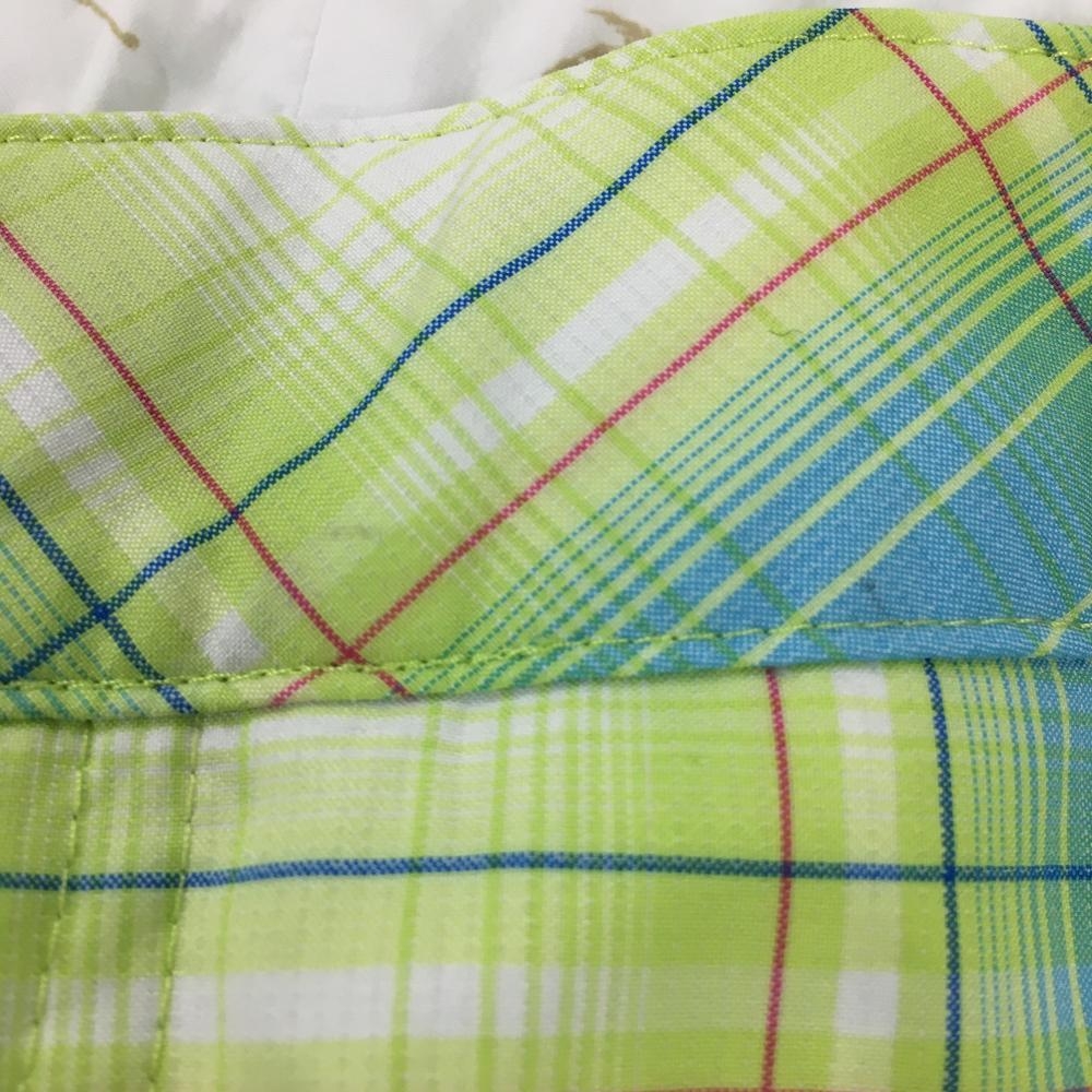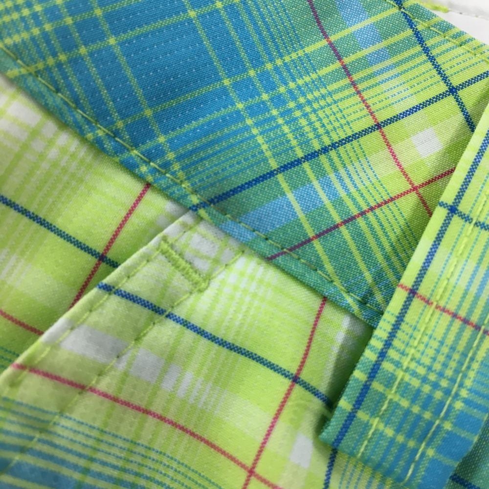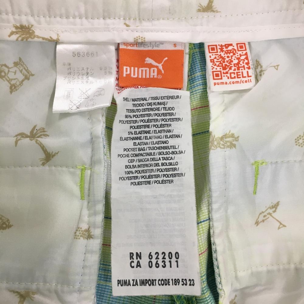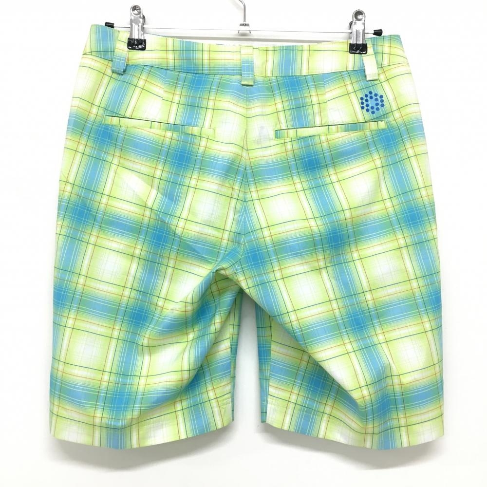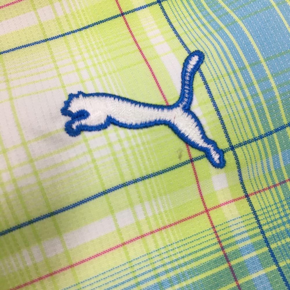 【美品】プーマ ハーフパンツ ライトグリーン×ライトブルー チェック柄 ロゴ刺しゅう メンズ S ゴルフウェア PUMA