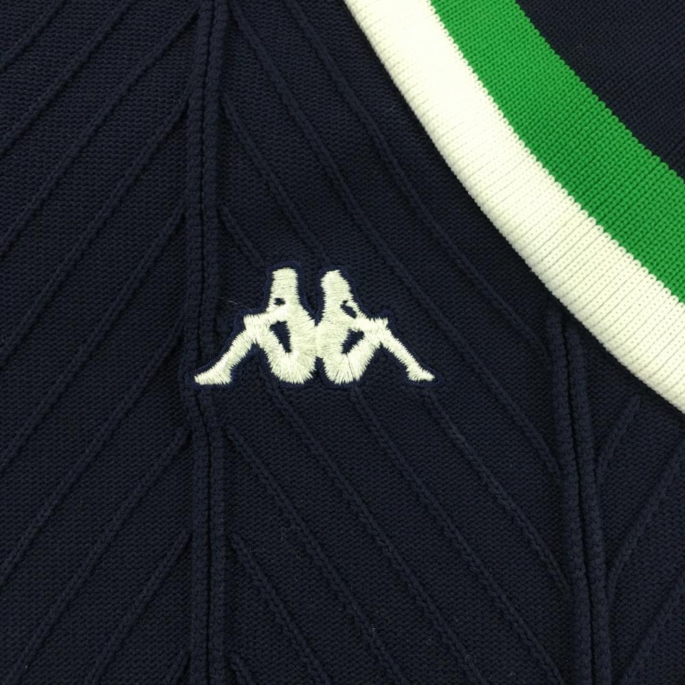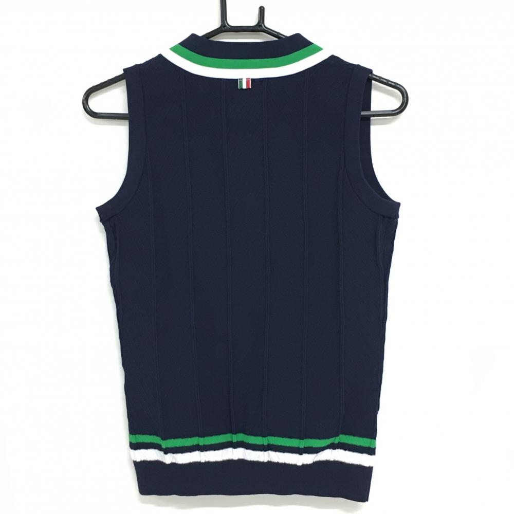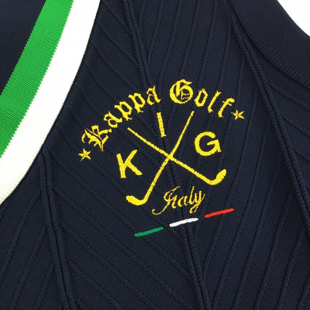 【美品】カッパ ニットベスト ネイビー×グリーン ネック・裾ライン Vネック レディース S ゴルフウェア Kappa