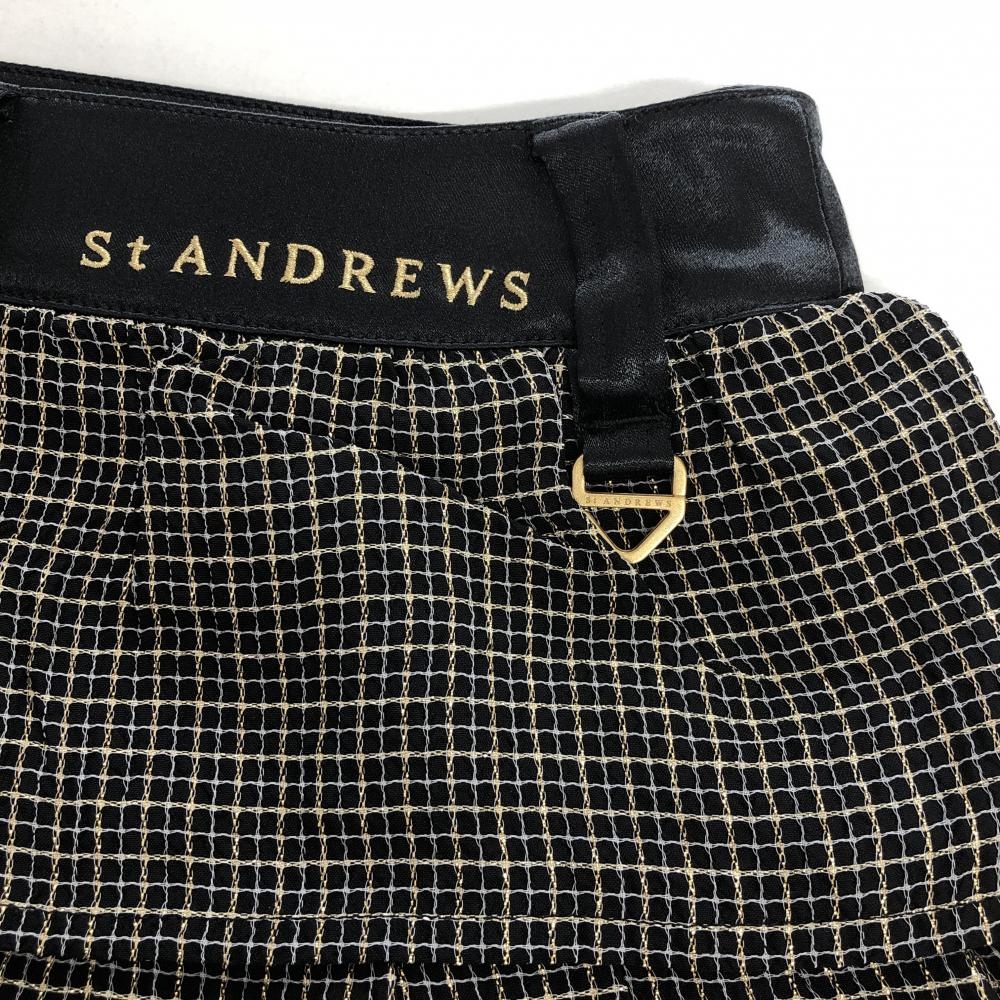 【超美品】セントアンドリュース スカート 黒×ゴールド チェック 3段フリル 裏地付 レディース S ゴルフウェア St ANDREWS