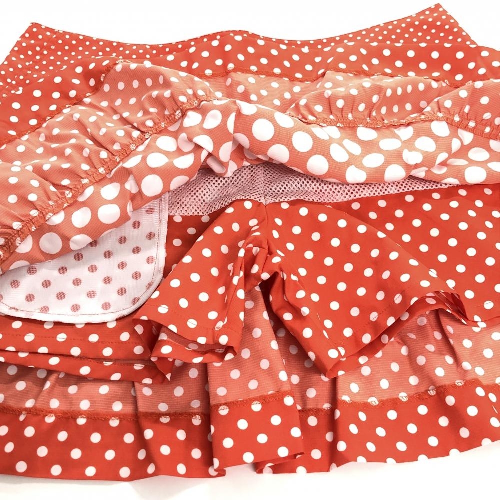【超美品】ルコック スカート オレンジ×白 ドット 内側メッシュインナーパンツ レディース 9(M) ゴルフウェア le coq sportif