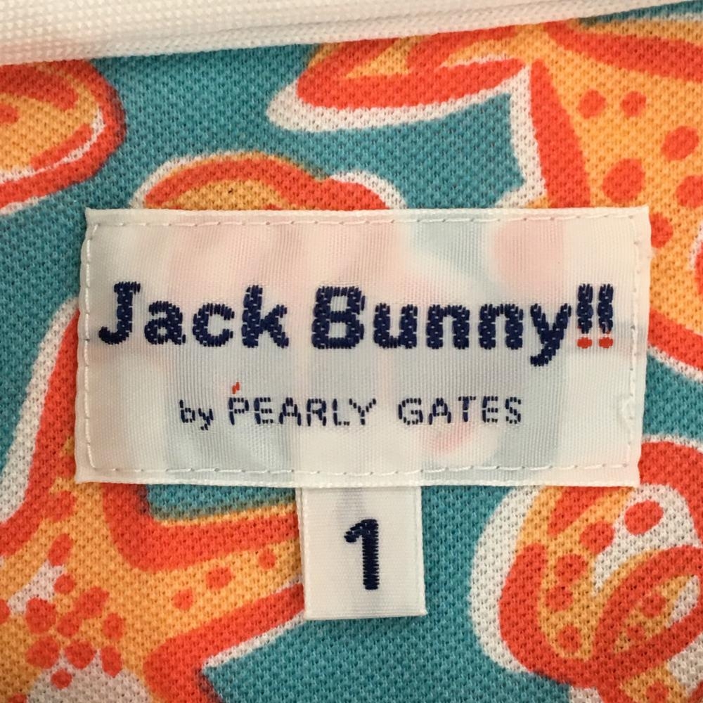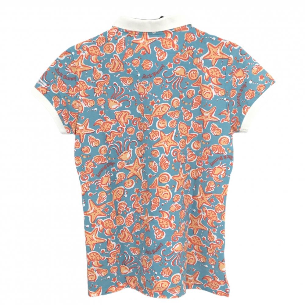 ジャックバニー 半袖ポロシャツ ライトブルー×オレンジ 総柄 レディース 1(M) ゴルフウェア Jack Bunny
