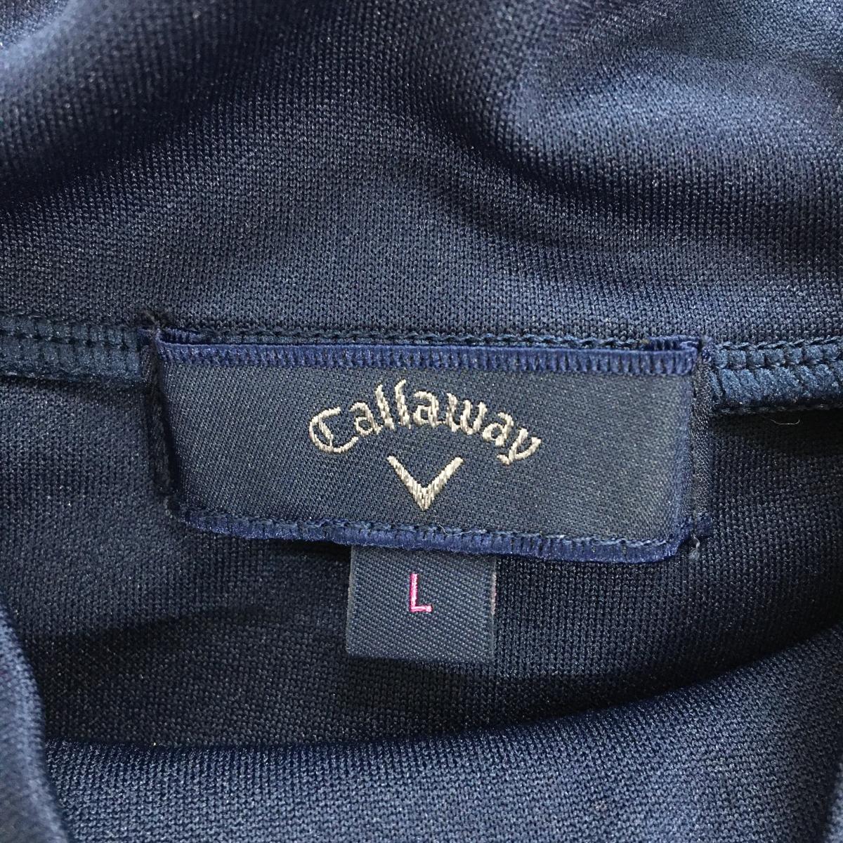 キャロウェイ 長袖ハイネックシャツ ネイビー×白 ロゴ刺しゅう レディース L ゴルフウェア 2022年モデル Callaway