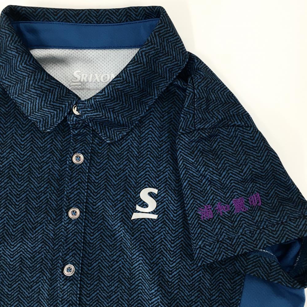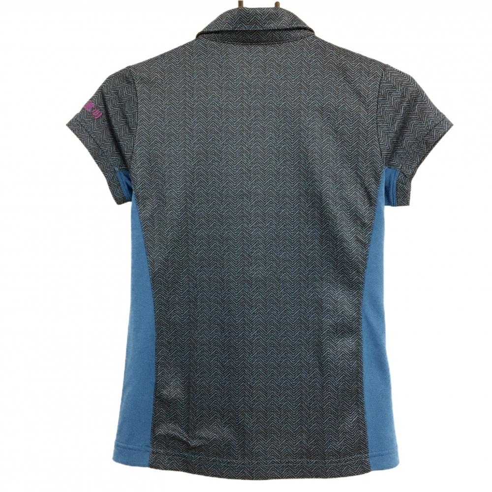 【超美品】スリクソン 半袖ポロシャツ ブルー×黒 ヘリンボーン風 サイド切替 レディース M ゴルフウェア SRIXON