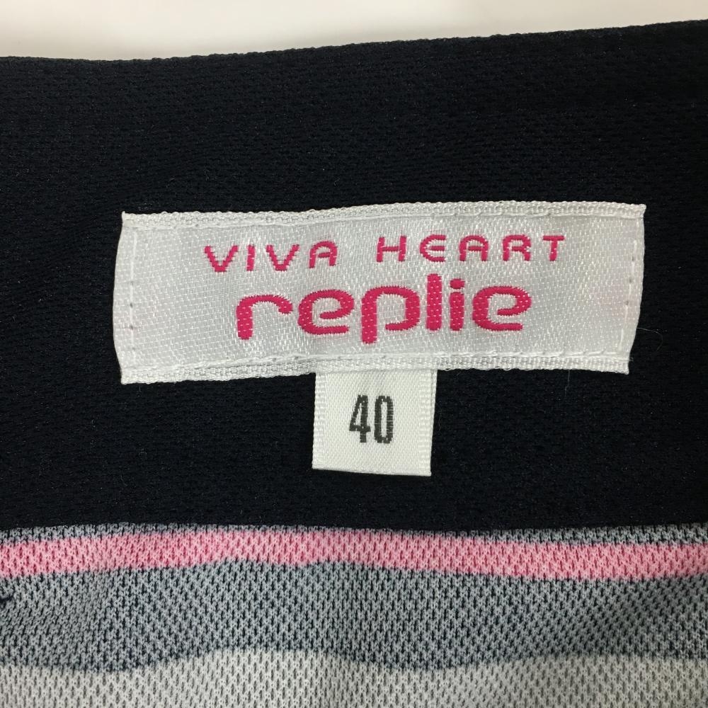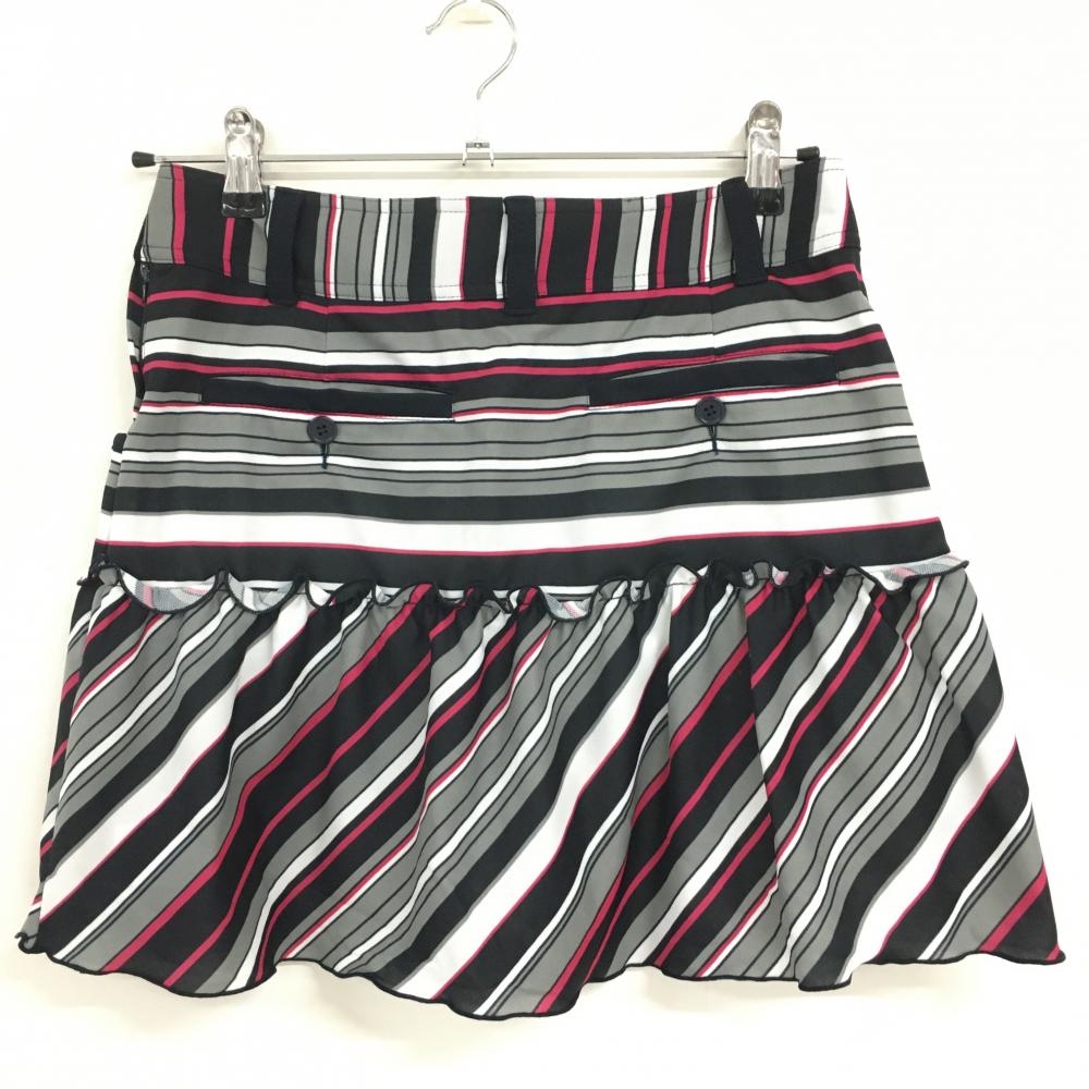 【超美品】ビバハート レプリエ スカート グレー×白×ピンク ボーダー 斜めストライプ レディース 40(M) ゴルフウェア VIVA HEART