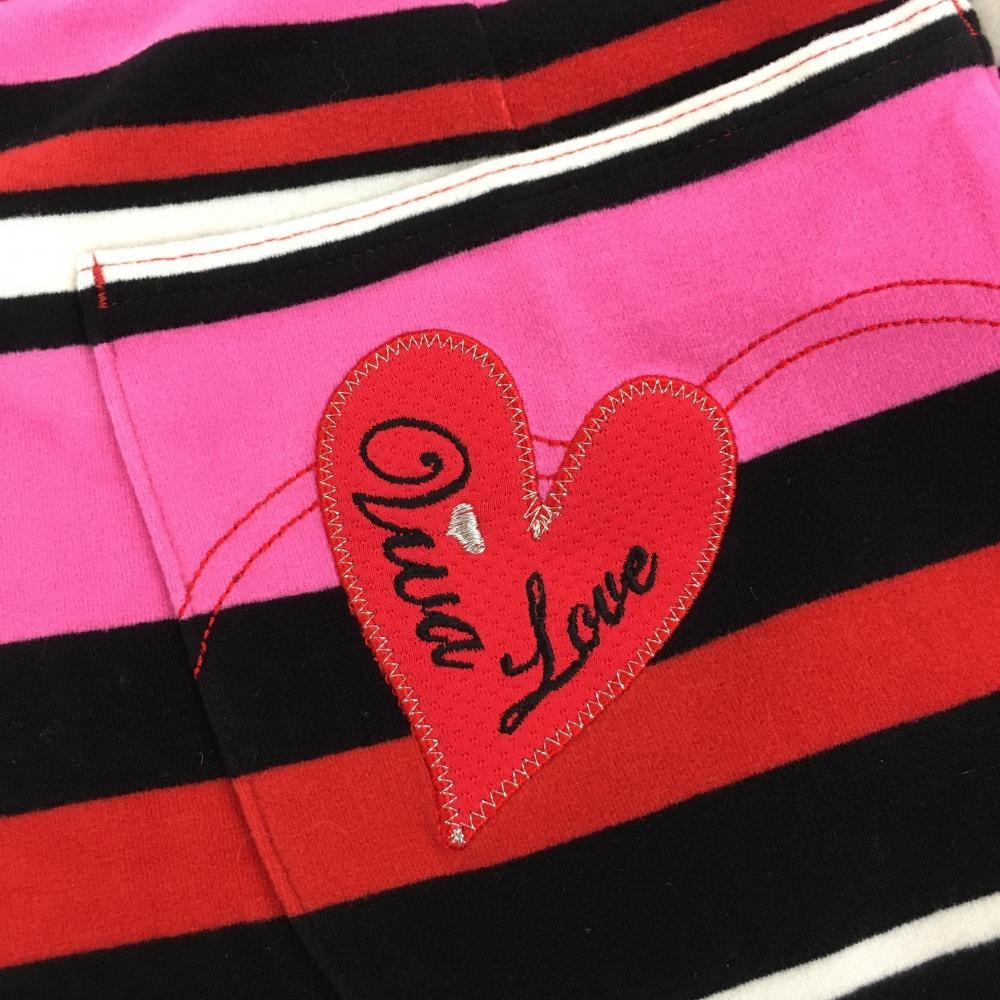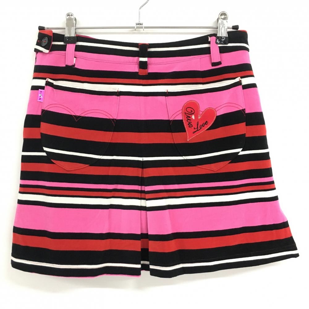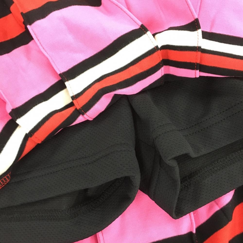 【超美品】ビバハート スカート ピンク×黒×レッド ランダムボーダー 表微起毛 レディース 40(M) ゴルフウェア VIVA HEART
