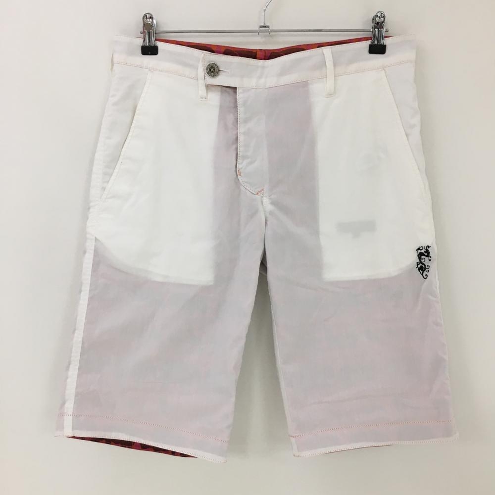 【美品】ダンスウィズドラゴン リバーシブルハーフパンツ オレンジ×ピンク メンズ 3(L) ゴルフウェア Dance With Dragon