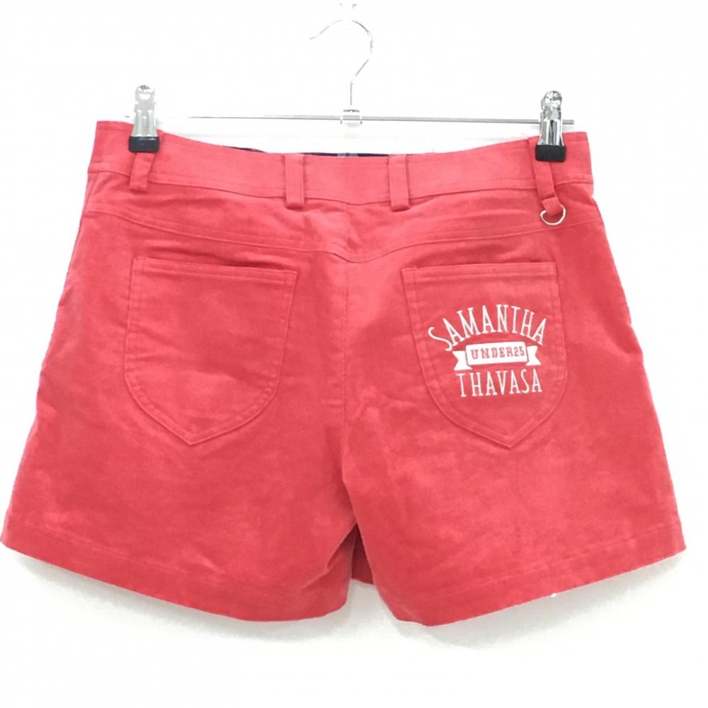 【超美品】サマンサタバサ UNDER25 コーデュロイショートパンツ レッド 一部プリーツ レディース ゴルフウェア Samantha Thavasa