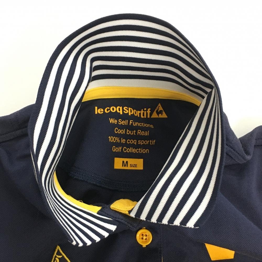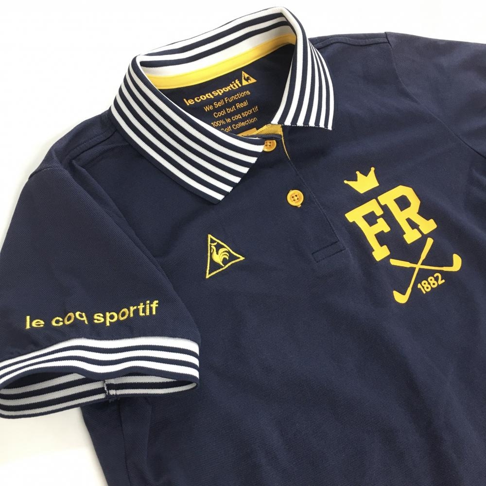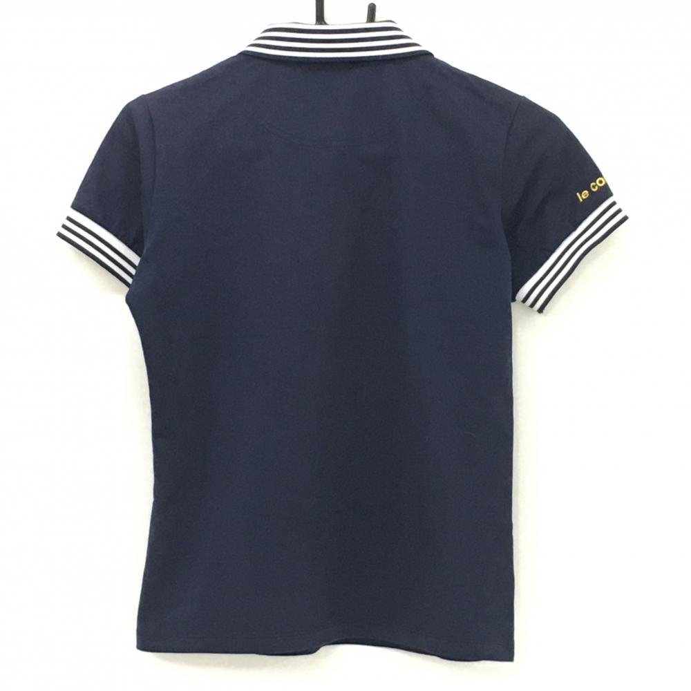 ルコック 半袖ポロシャツ ネイビー×白 ネック・袖口ボーダー レディース M ゴルフウェア le coq sportif