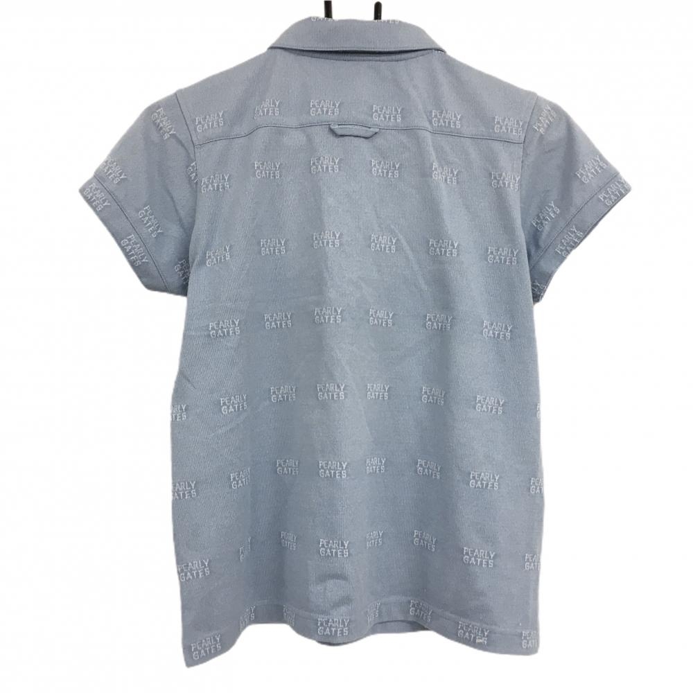 パーリーゲイツ 半袖ポロシャツ ライトブルー×白 ロゴプリント レディース 0(S) ゴルフウェア 2023年モデル PEARLY GATES