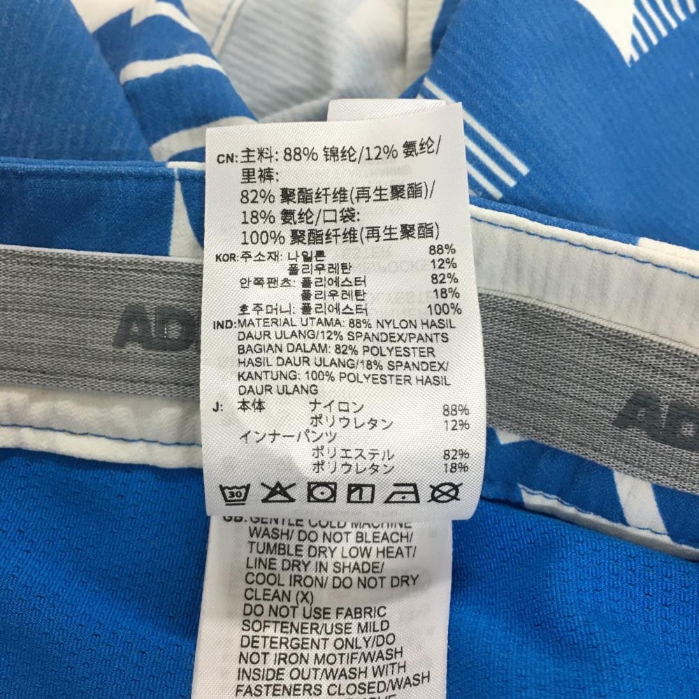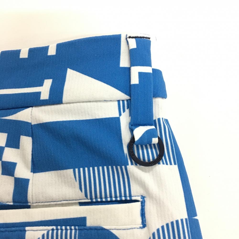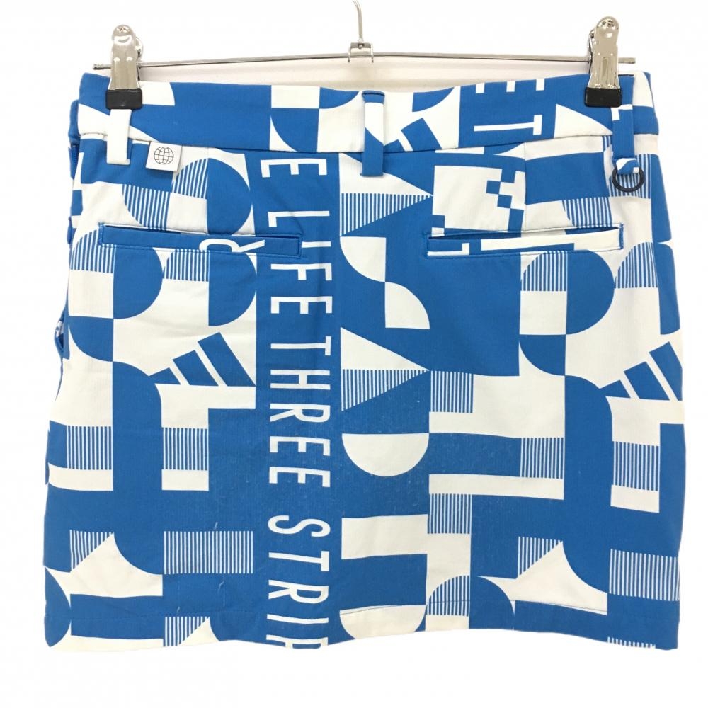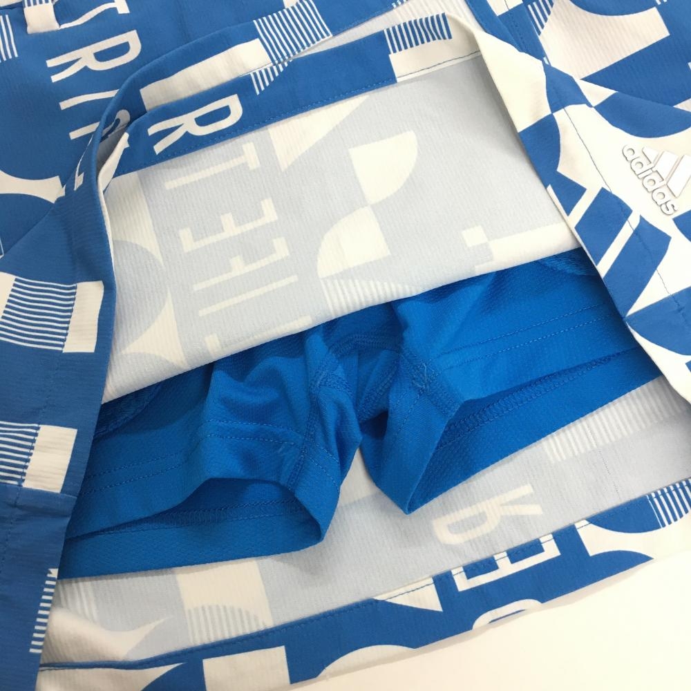 アディダス スカート ブルー×白 総柄 織生地 内側インナーパンツ レディース S ゴルフウェア adidas