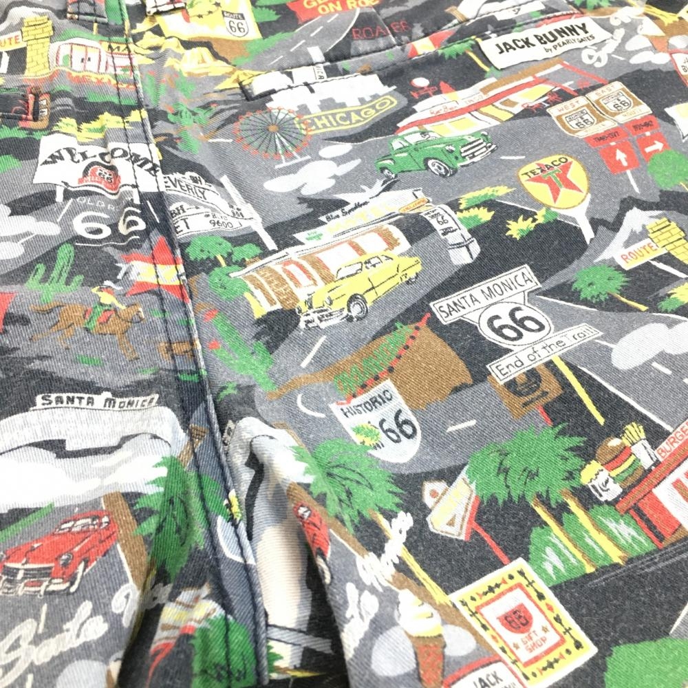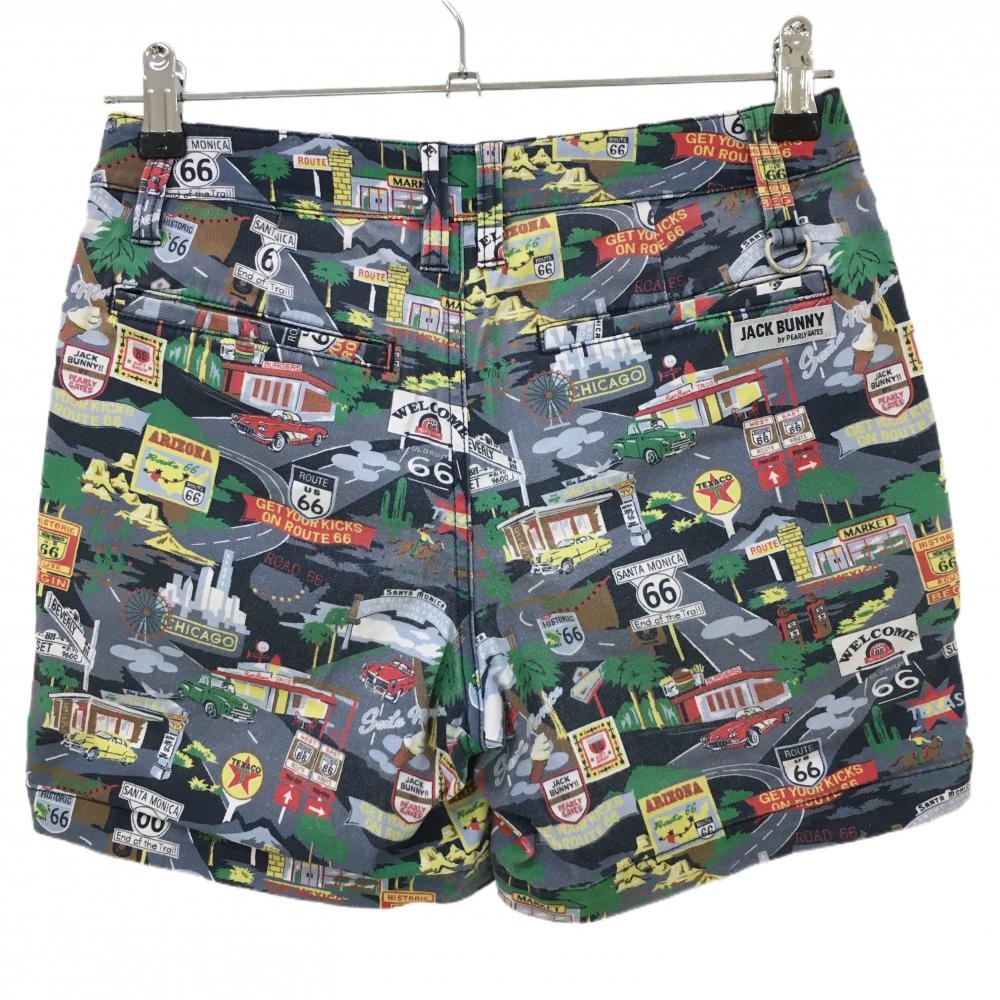 ジャックバニー ショートパンツ グレー×グリーン 道路柄 車柄 レディース 0(S) ゴルフウェア Jack Bunny