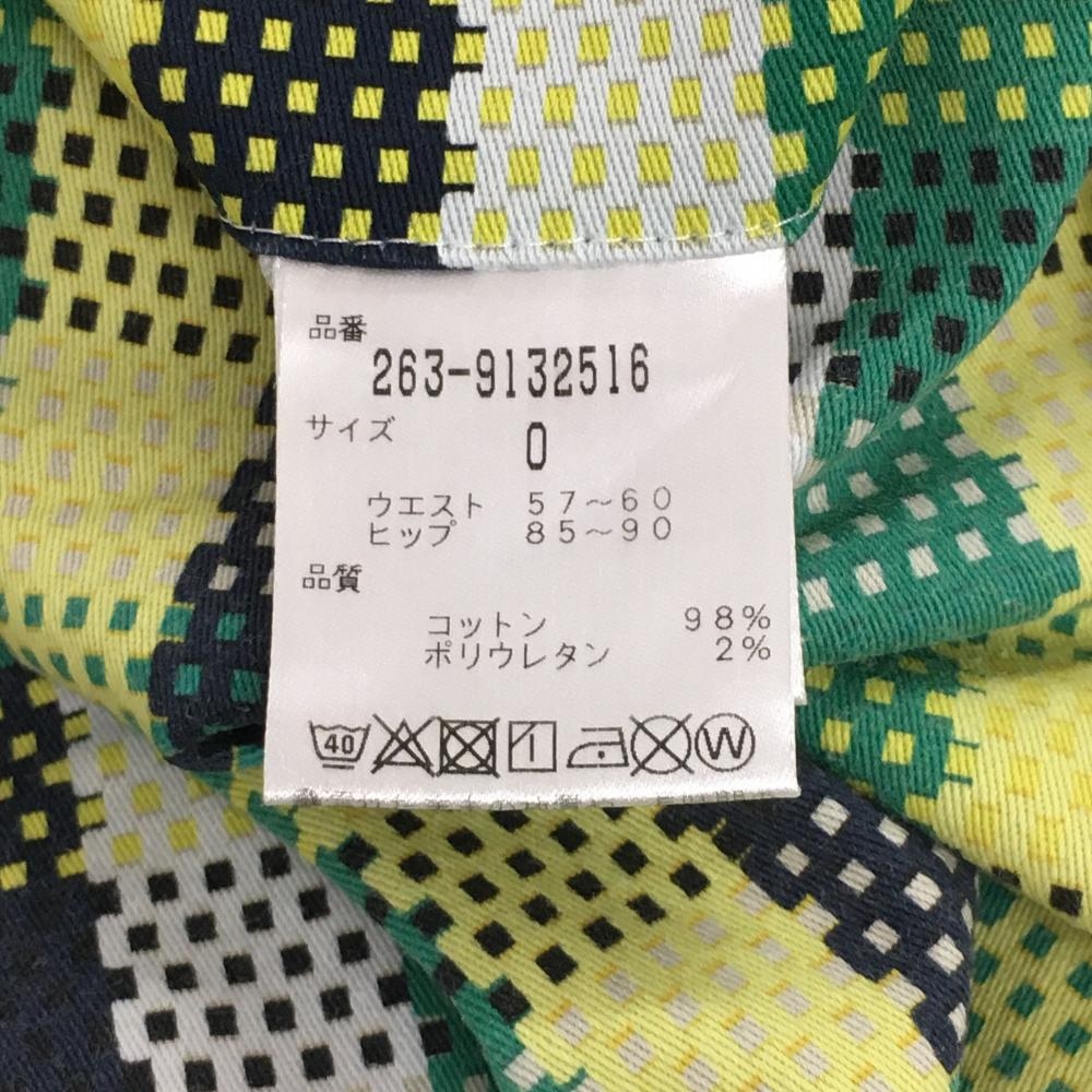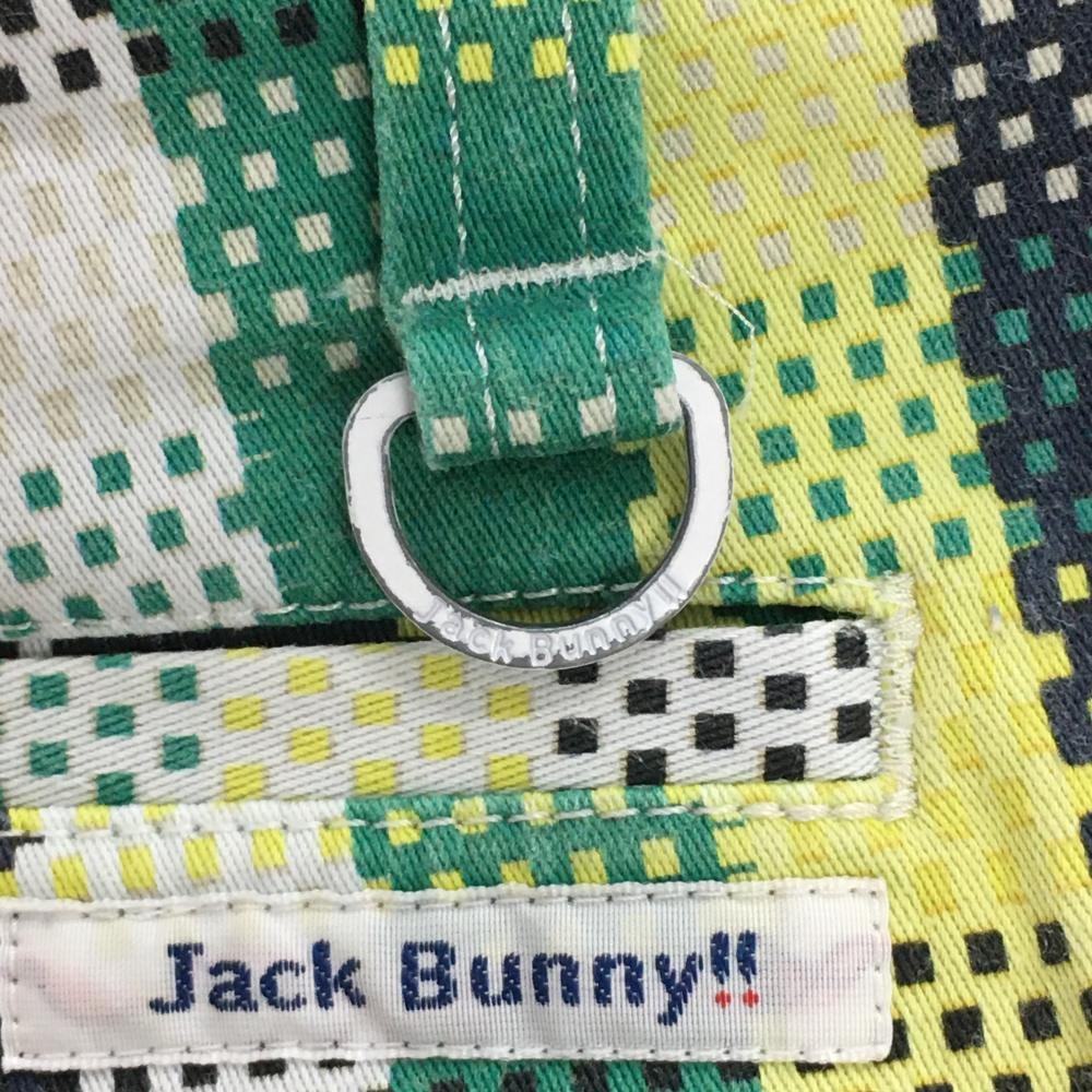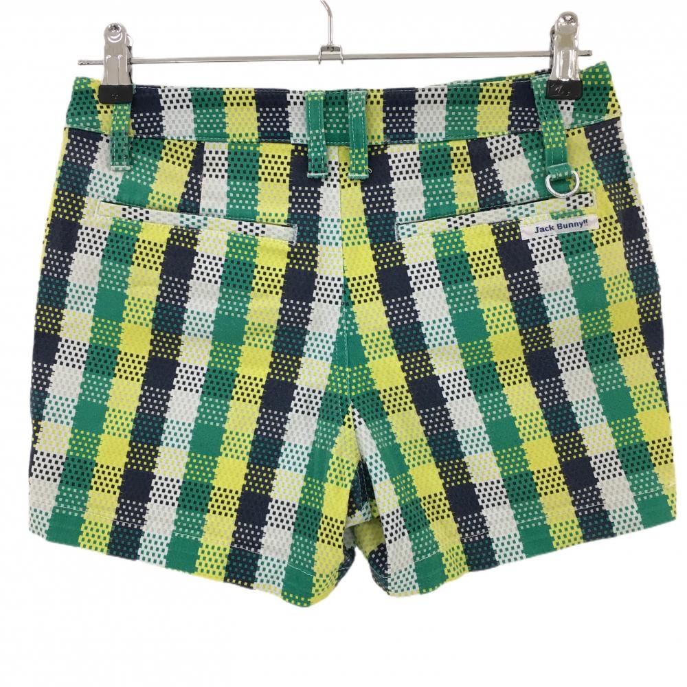 【美品】ジャックバニー ショートパンツ グリーン×イエロー チェック調 スクエアドット レディース 0(S) ゴルフウェア Jack Bunny