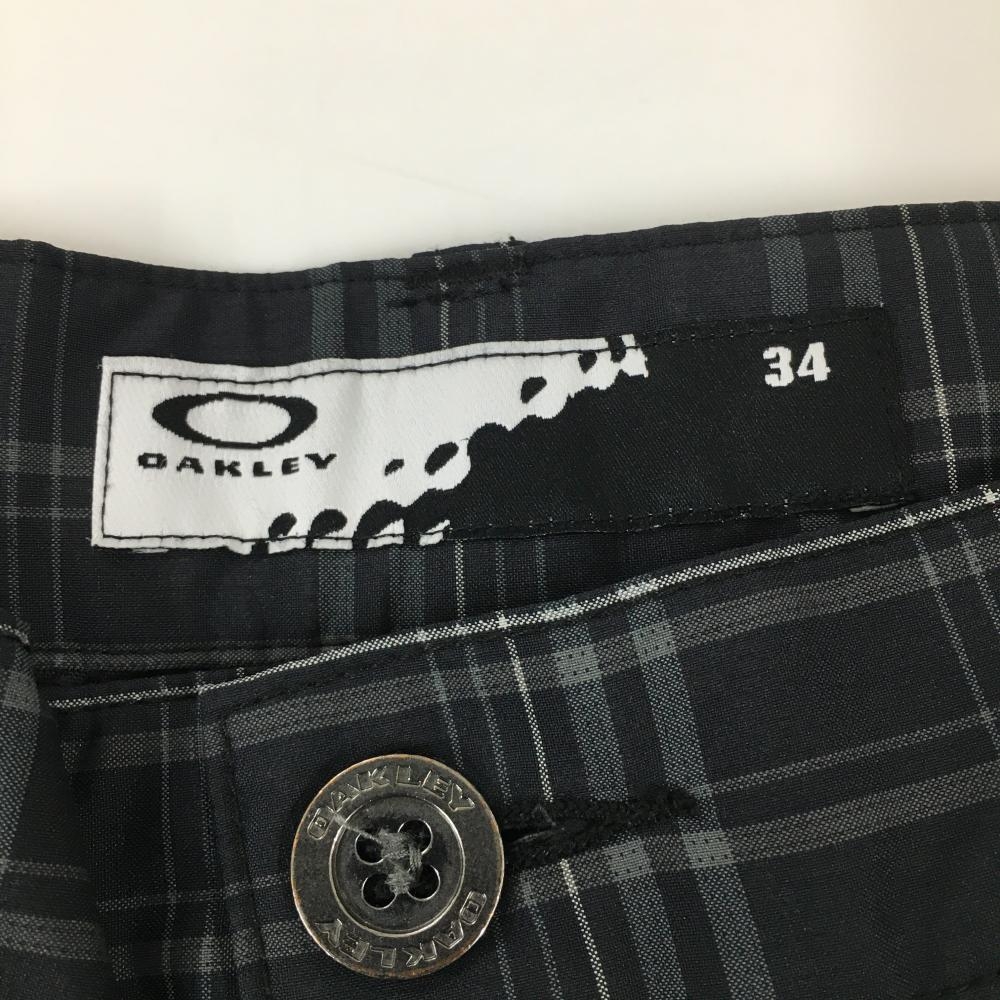 【美品】オークリー パンツ ダークグレー×グレー チェック柄 ティー装着可 ロゴ刺しゅう メンズ 34 ゴルフウェア Oakley
