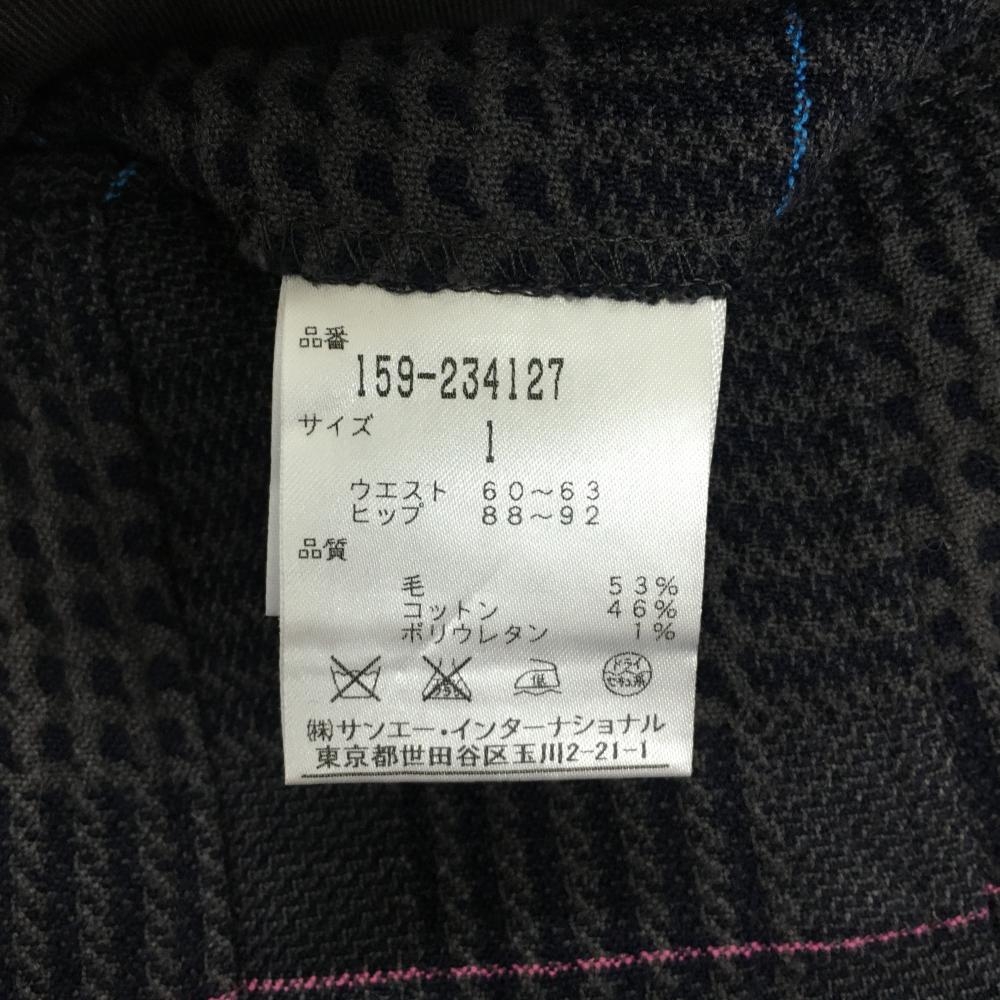 【美品】マスターバニー スカート グレー×ネイビー チェック 裾プリーツ レディース 1(M) ゴルフウェア MASTER BUNNY EDITION