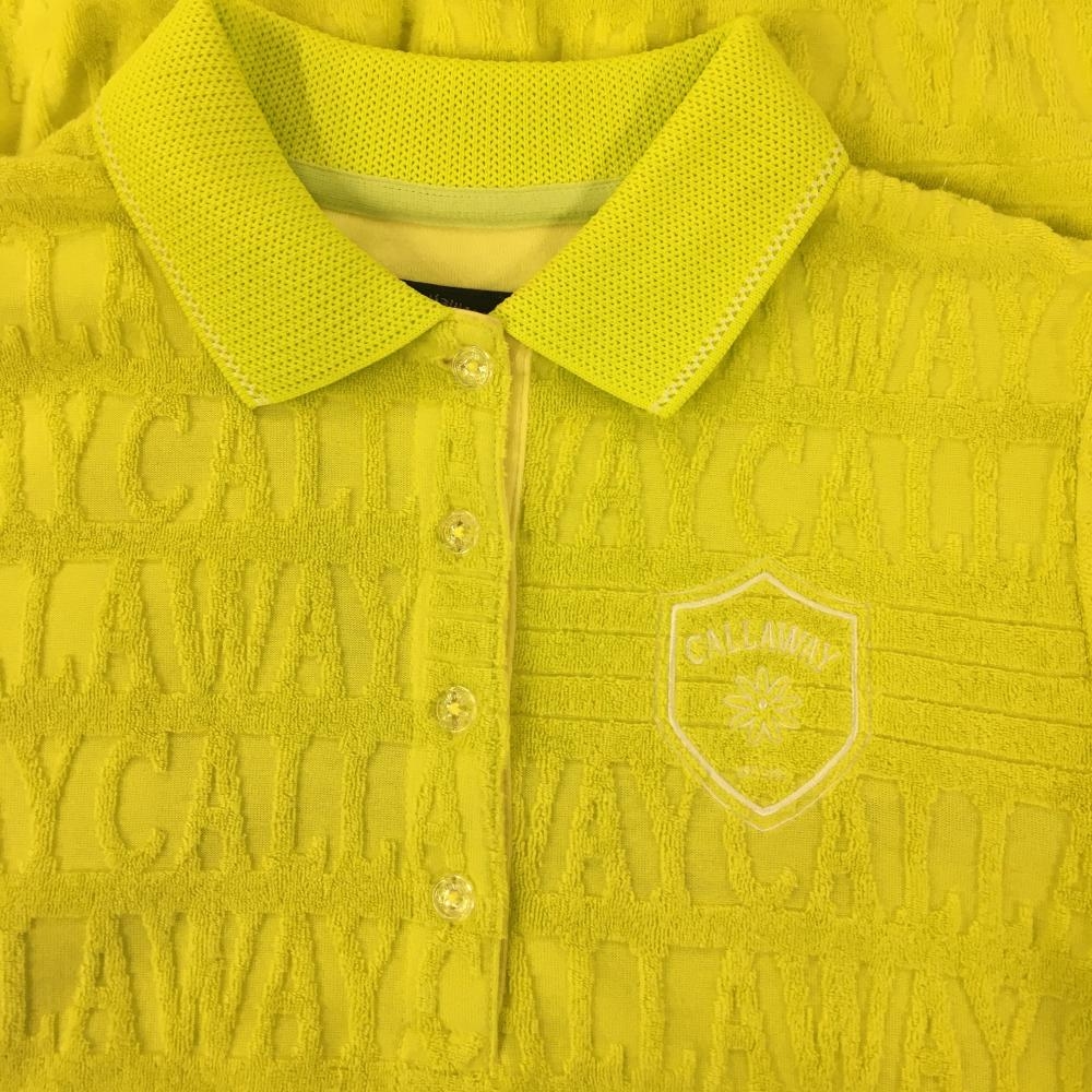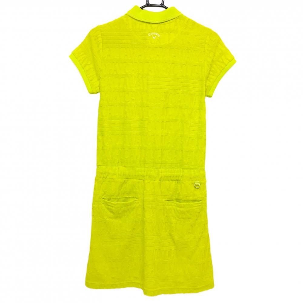 【美品】キャロウェイ 半袖ポロワンピース イエロー ロゴ総柄 パイル地 レディース M ゴルフウェア 2023年モデル Callaway