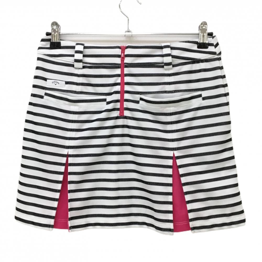 キャロウェイ スカート 白×黒 ボーダー ボックスプリーツ 裏地付き レディース M ゴルフウェア Callaway