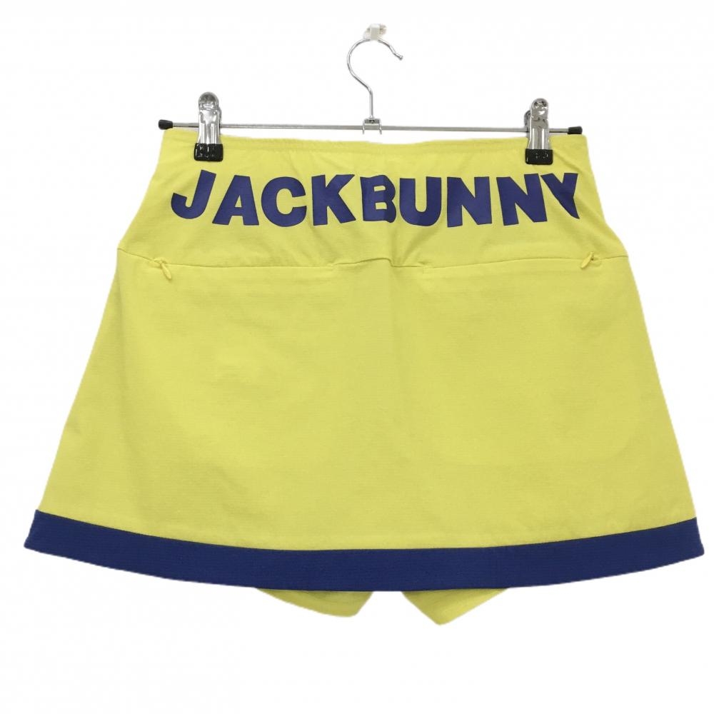 【超美品】ジャックバニー スカート イエロー×ブルー 前面プリーツ ウエストビッグロゴ レディース 1(M) ゴルフウェア Jack Bunny