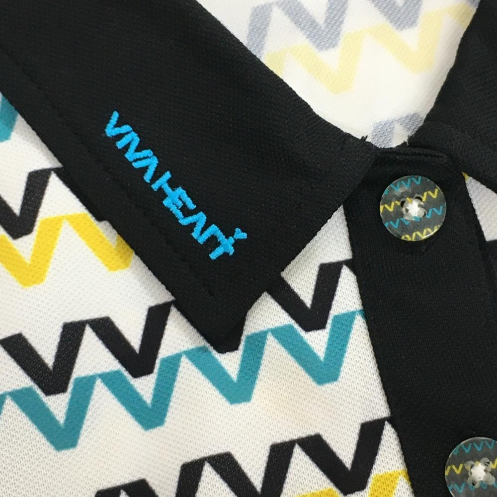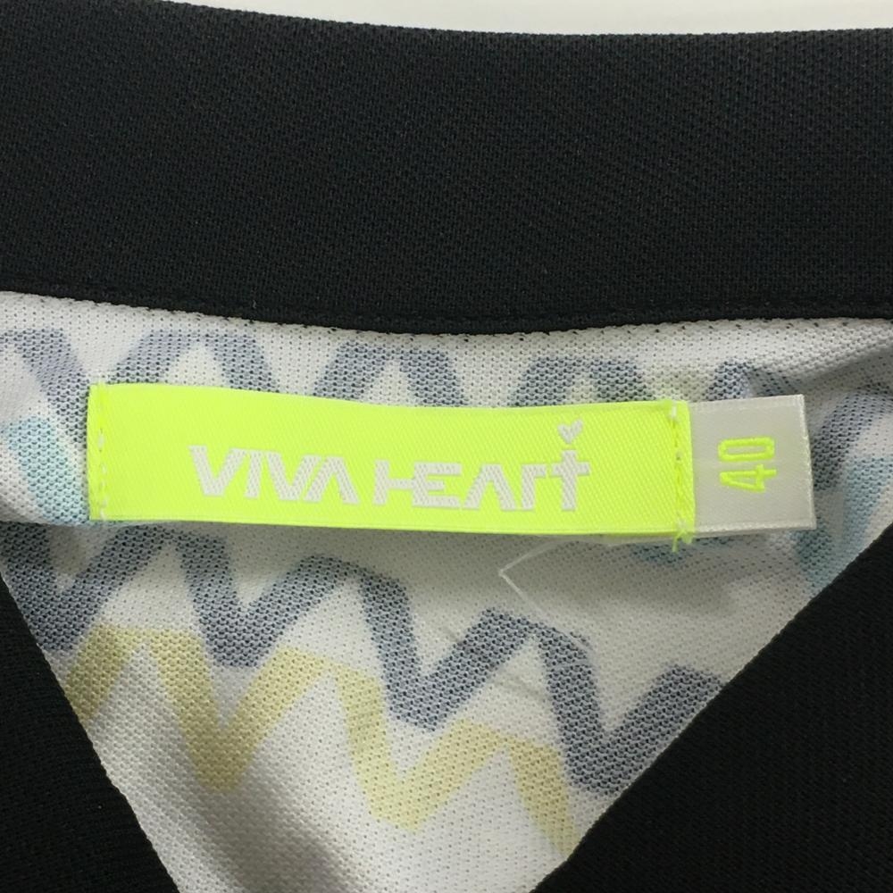 ビバハート 半袖ポロシャツ 白×黒 総柄 レディース 40(M) ゴルフウェア VIVA HEART