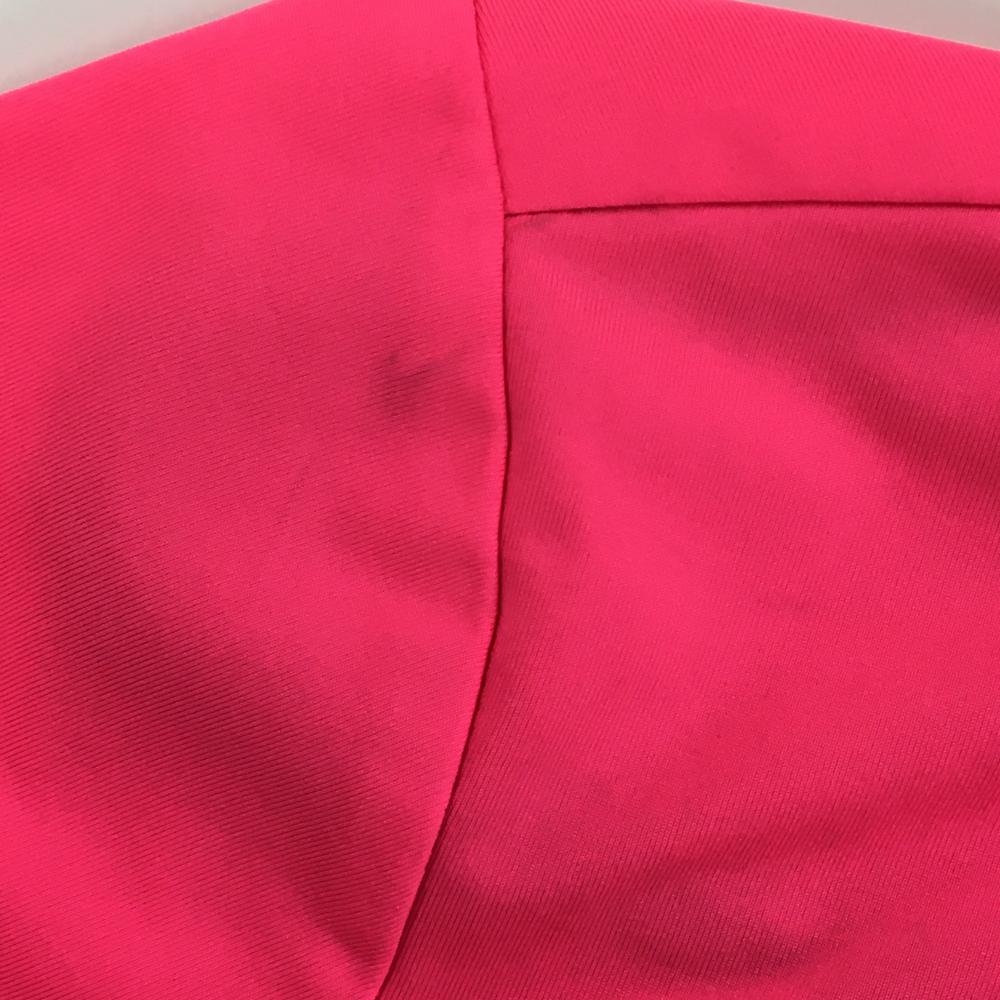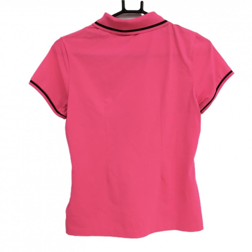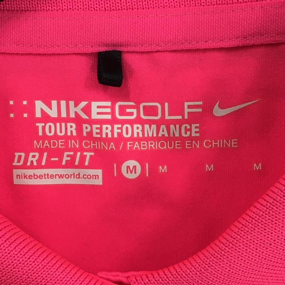 【美品】ナイキゴルフ 半袖ポロシャツ 蛍光ピンク×黒 袖ライン 胸ロゴ DRY-FIT TOURPERFORMANCE レディース M ゴルフウェア NIKE