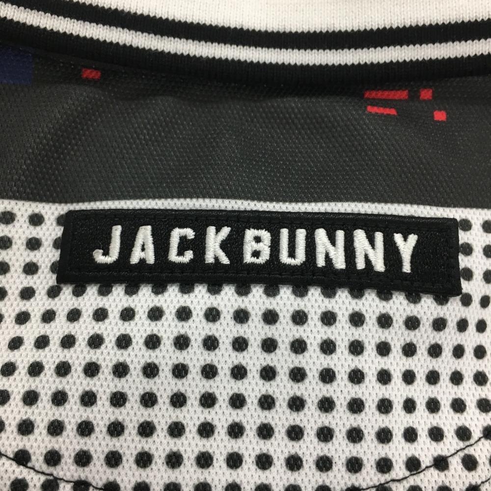 【美品】ジャックバニー 半袖ポロシャツ 白×黒 ドット タウン柄 胸ワッペン レディース 0(S) ゴルフウェア Jack Bunny