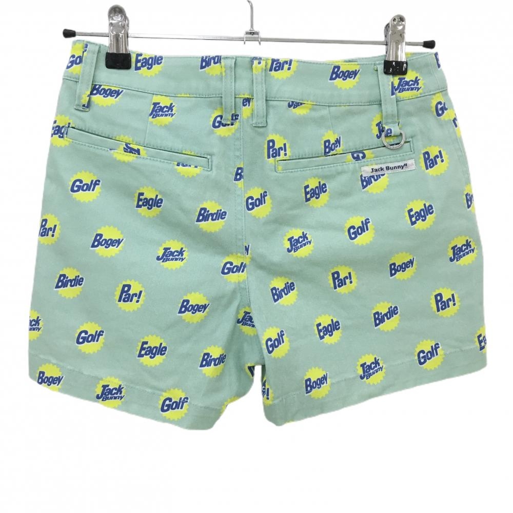 ジャックバニー ショートパンツ ライトグリーン×イエロー 英字総柄 レディース 0(S) ゴルフウェア Jack Bunny