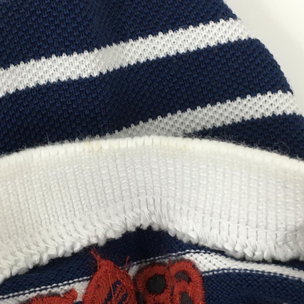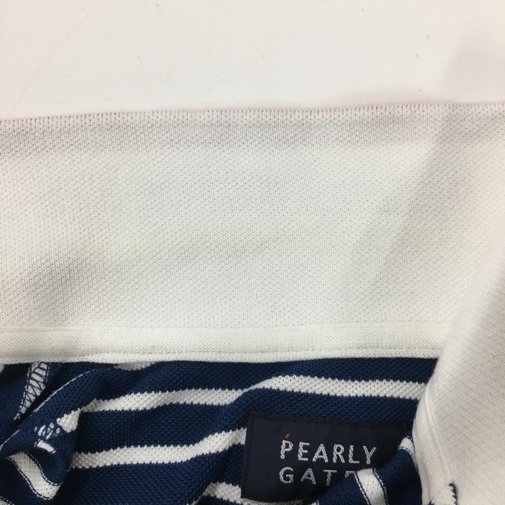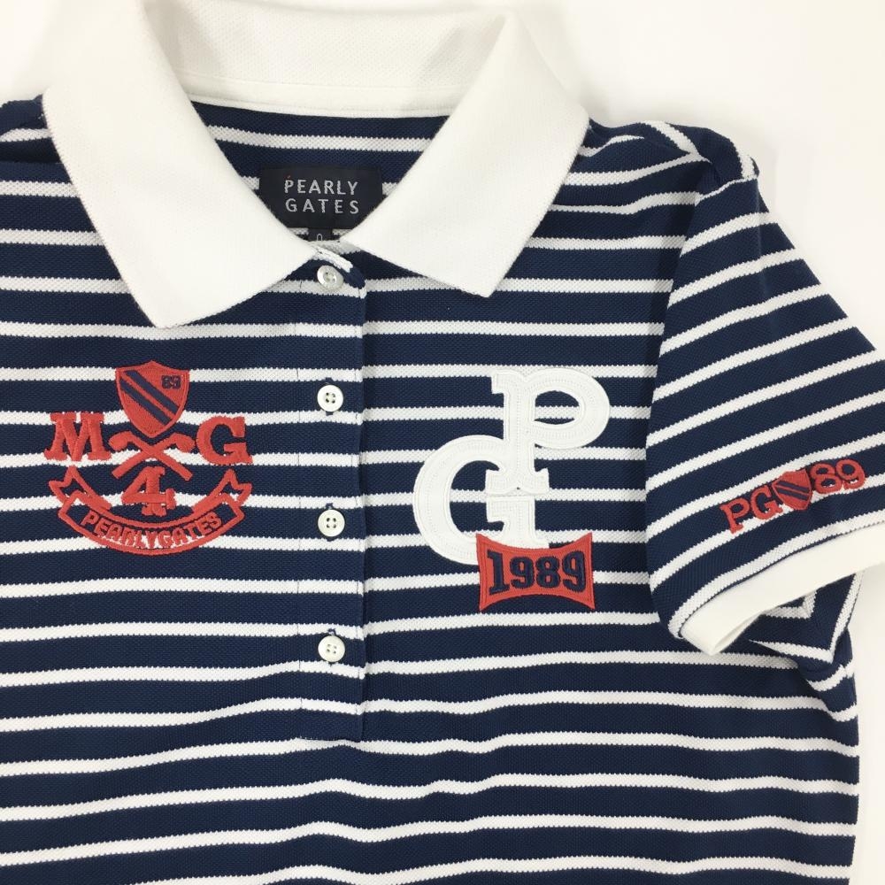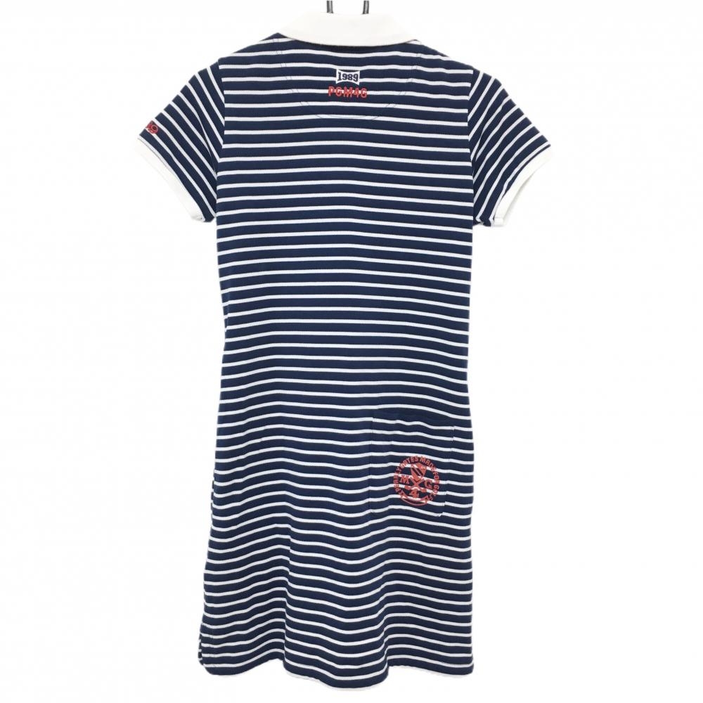 【美品】パーリーゲイツ 半袖ポロワンピース ネイビー×白 ボーダー 襟薄汚れ レディース 0(S) ゴルフウェア PEARLY GATES